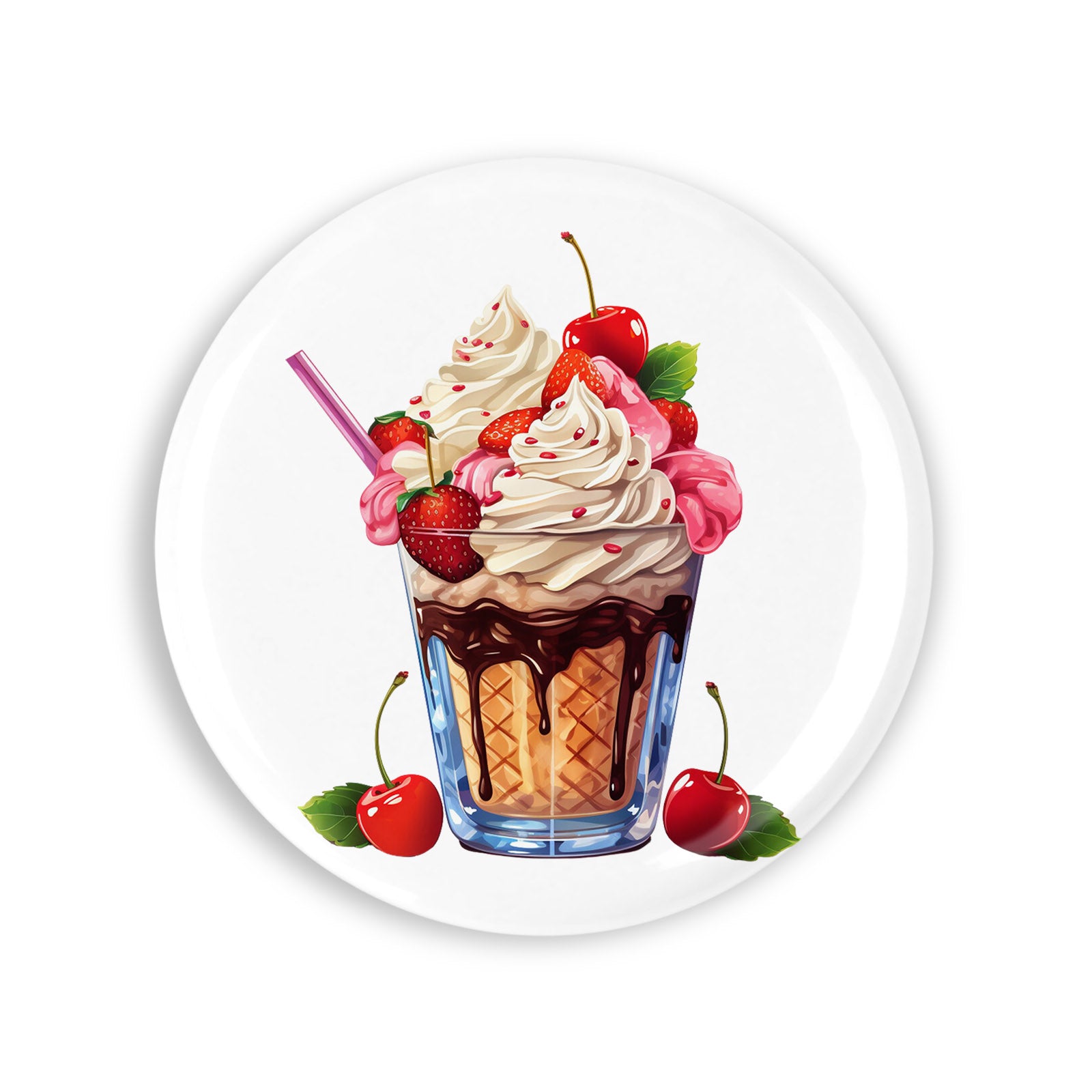 Set 4 insigne, Crema de inghetata cu capsune si cirese, NO4238, Metal, 44 mm, Multicolor