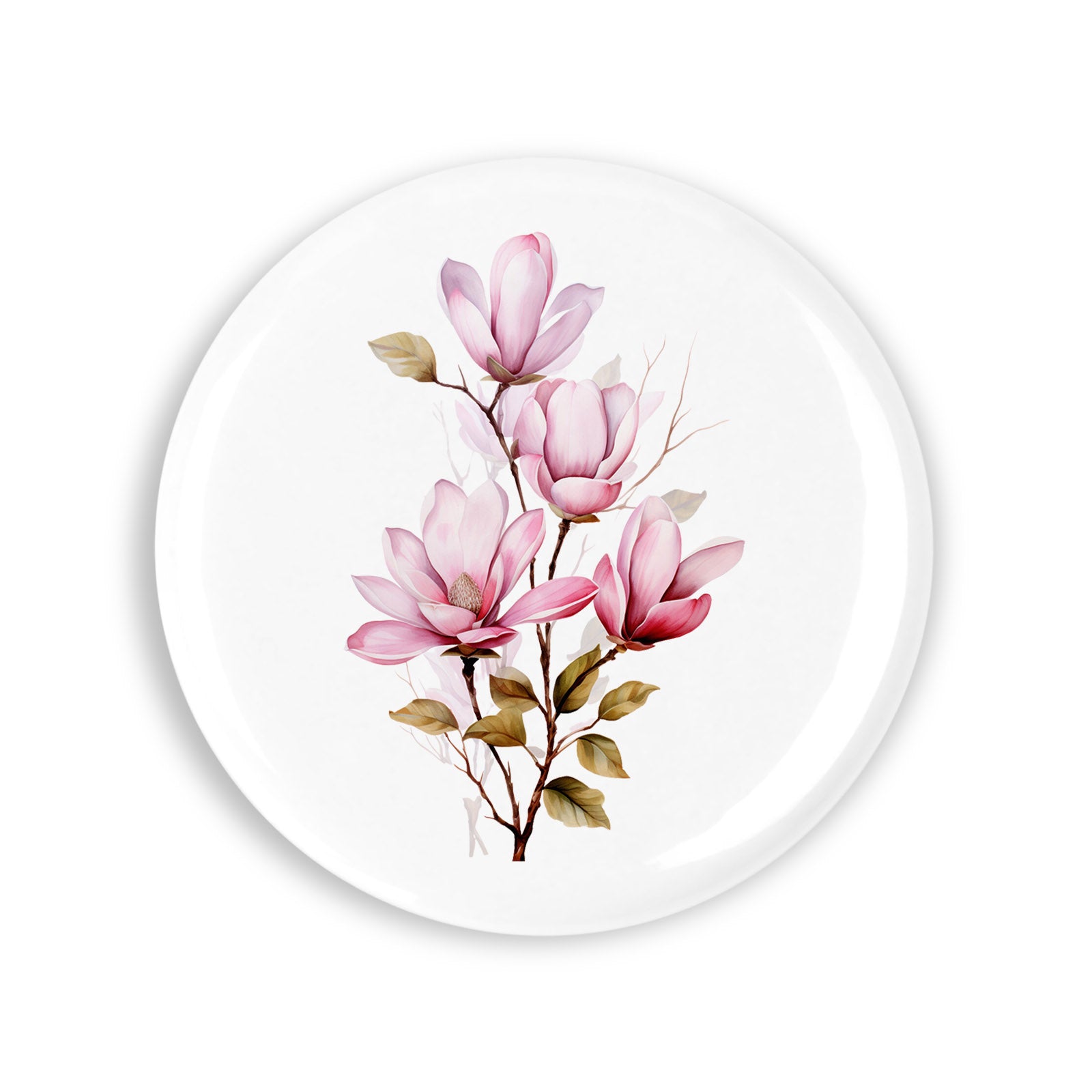 Set 4 insigne, Crenguta cu magnolii inflorite, NO3785, Metal, 44 mm, Multicolor