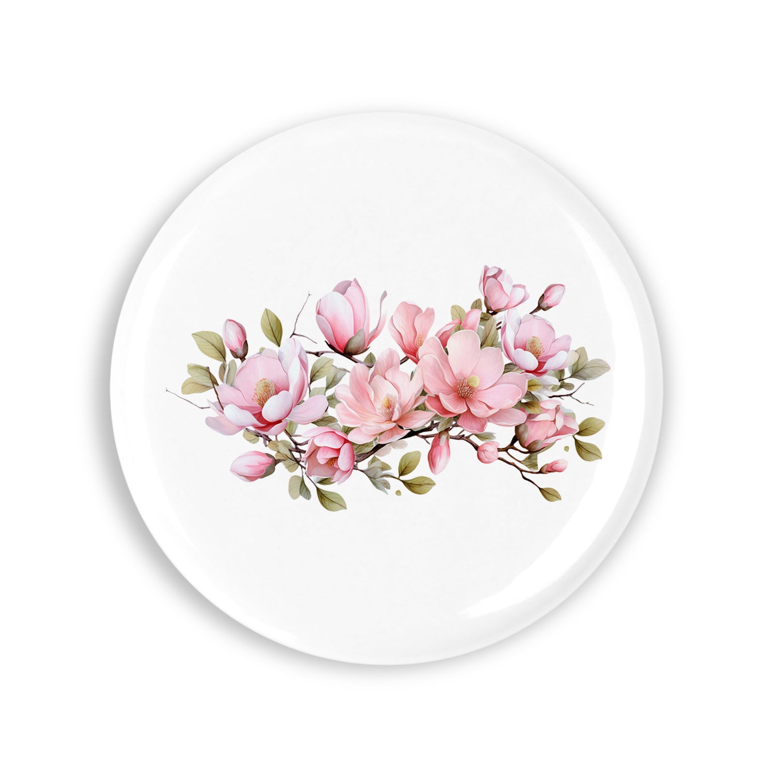 Set 4 insigne, Crenguta cu magnolii, NO5188, Metal, 44 mm, Multicolor