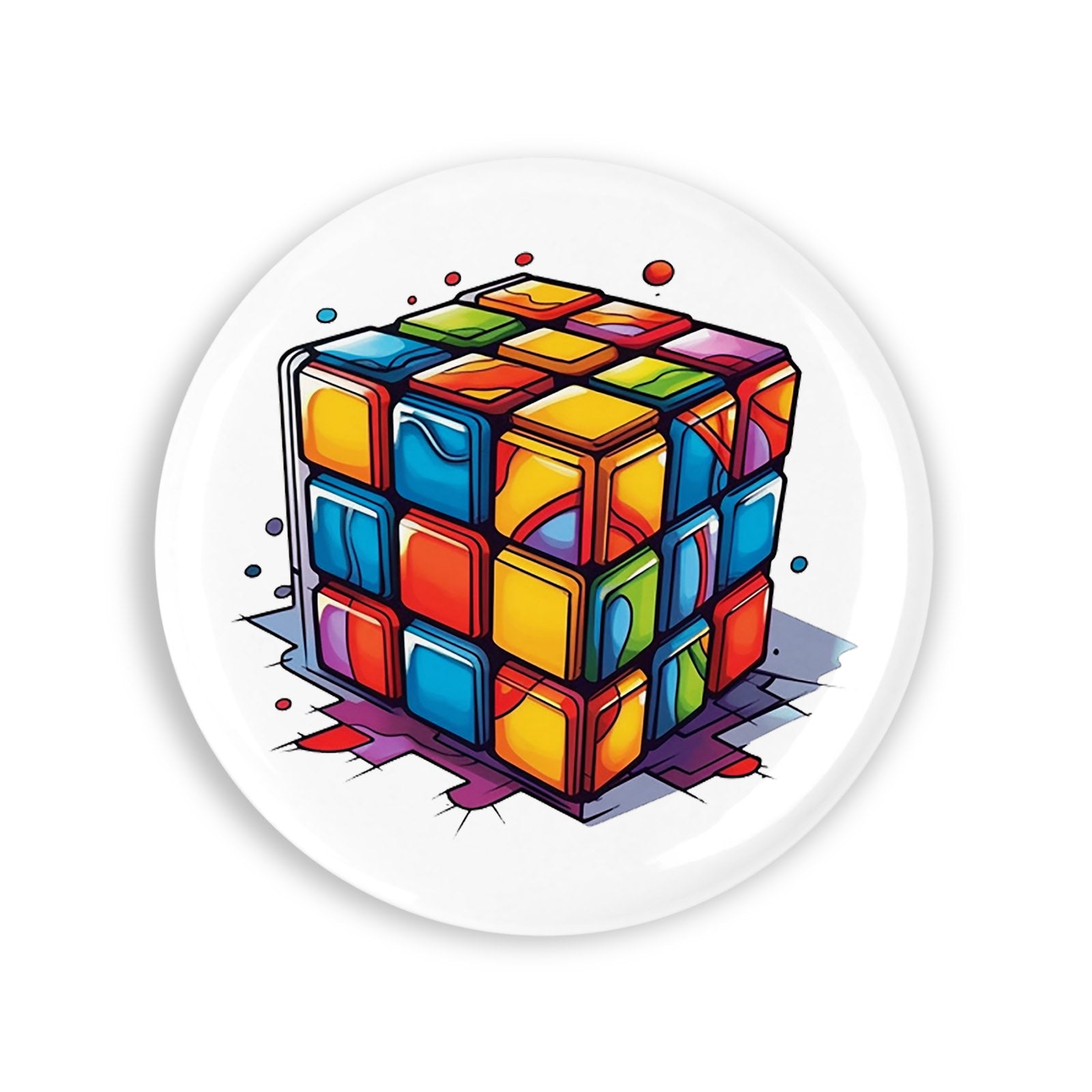 Set 4 insigne, Cub Rubik curcubeu, NO2591, Metal, 44 mm, Multicolor
