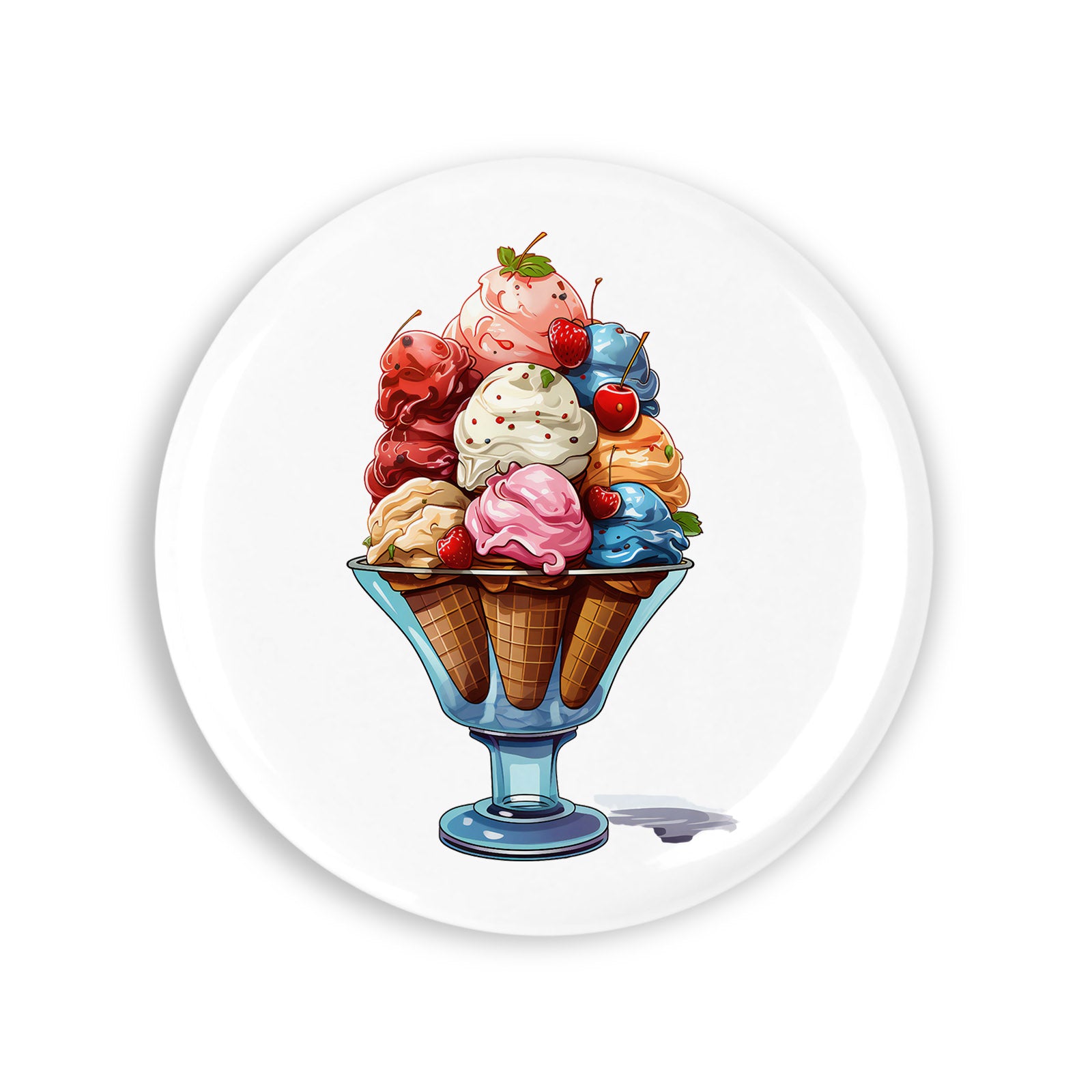 Set 4 insigne, Cupa cu inghetate si fructe, NO1530, Metal, 44 mm, Multicolor