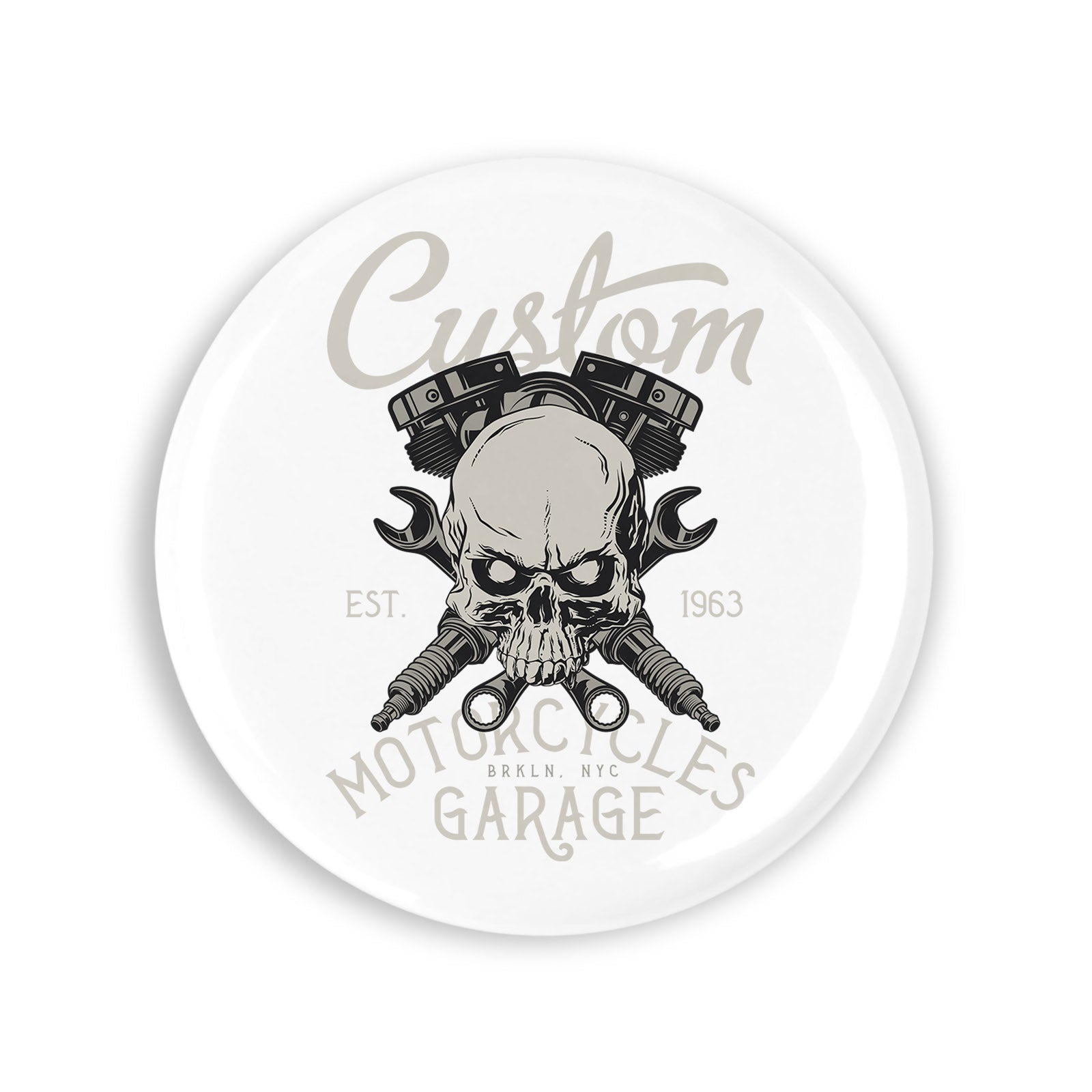 Set 4 insigne, Custom motorcycles garage, NO5649, Metal, 44 mm, Multicolor