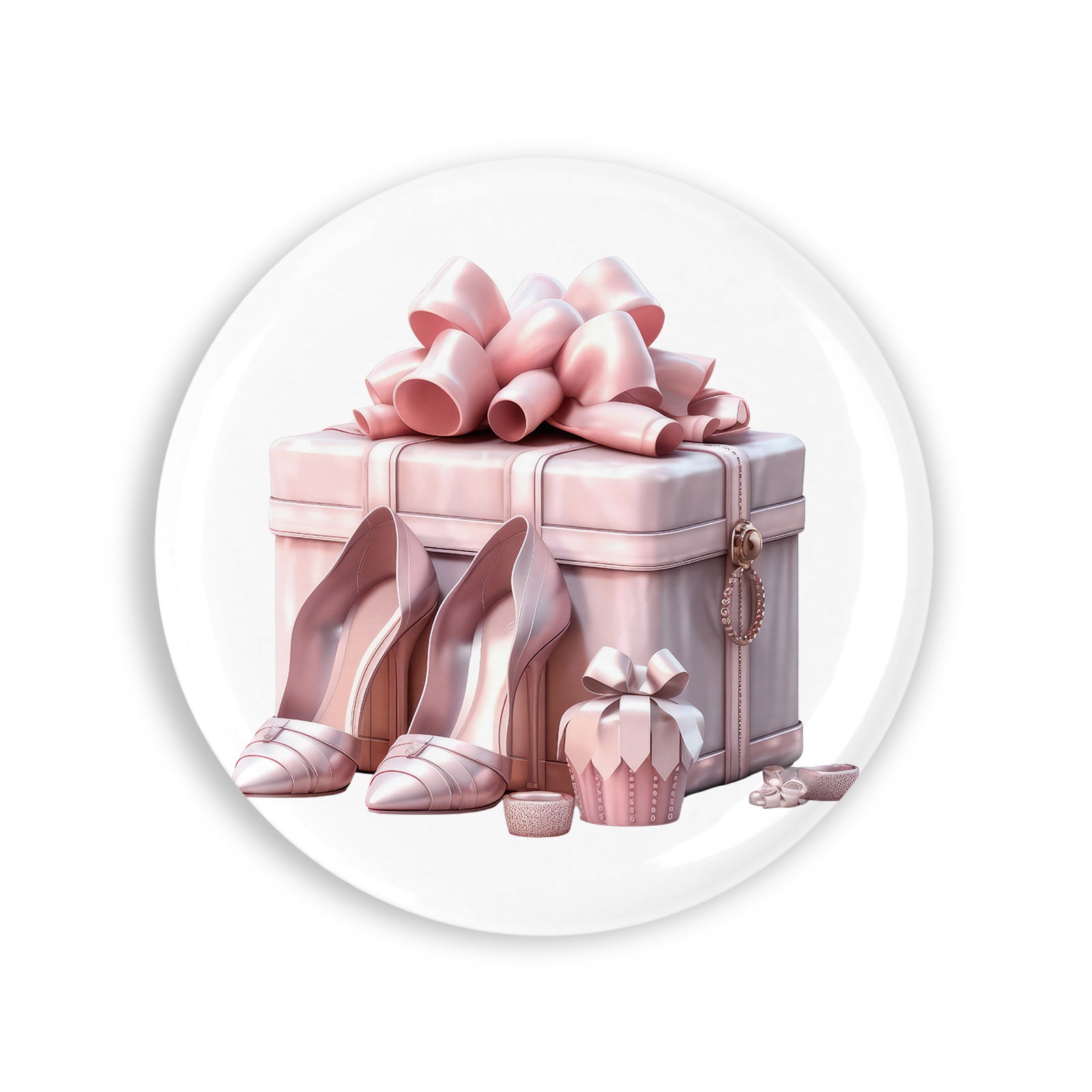 Set 4 insigne, Cutie briosa si pantofi cu toc roz, NO5917, Metal, 44 mm, Multicolor