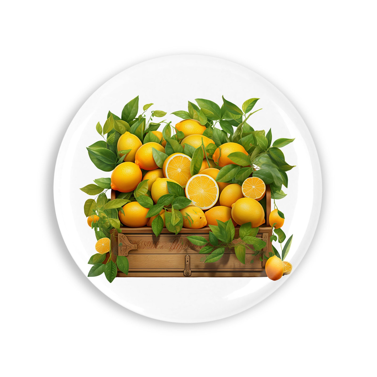 Set 4 insigne, Cutie de lemn cu citrice, NO1810, Metal, 44 mm, Multicolor