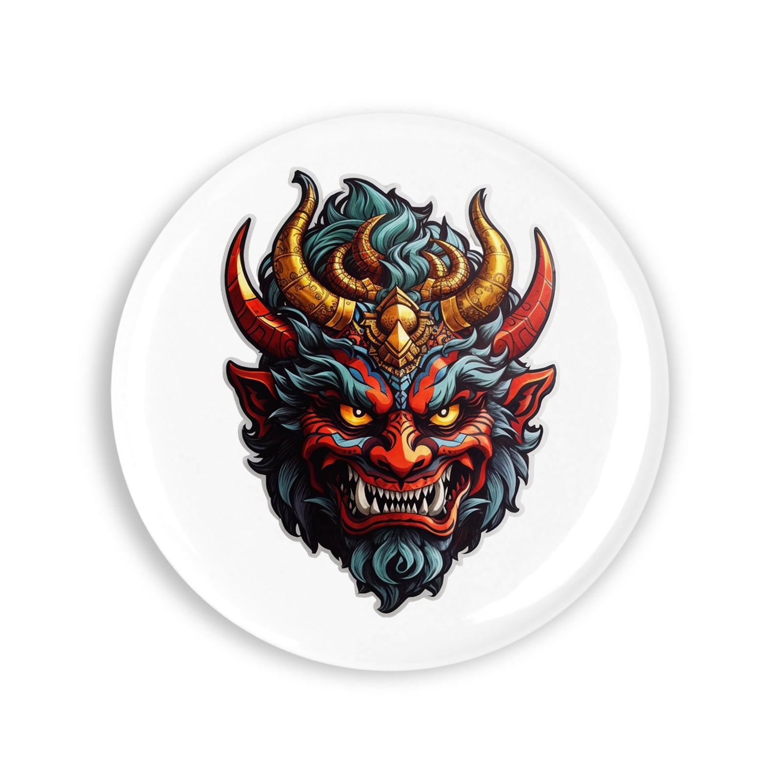 Set 4 insigne, Demonul Balam masca, NO7745, Metal, 44 mm, Multicolor