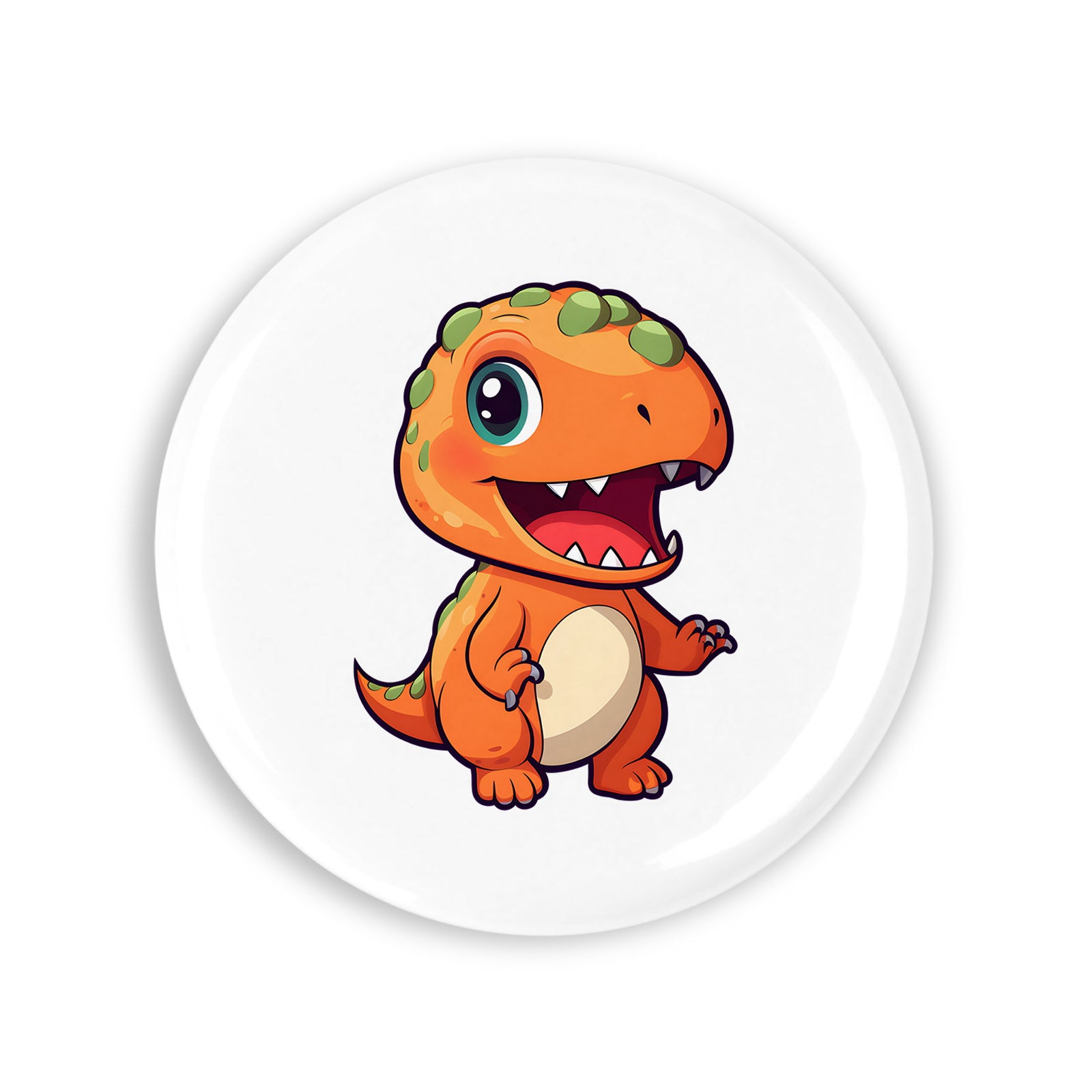 Set 4 insigne, Dinosaur portocaliu cu solzi verzi, NO2271, Metal, 44 mm, Multicolor