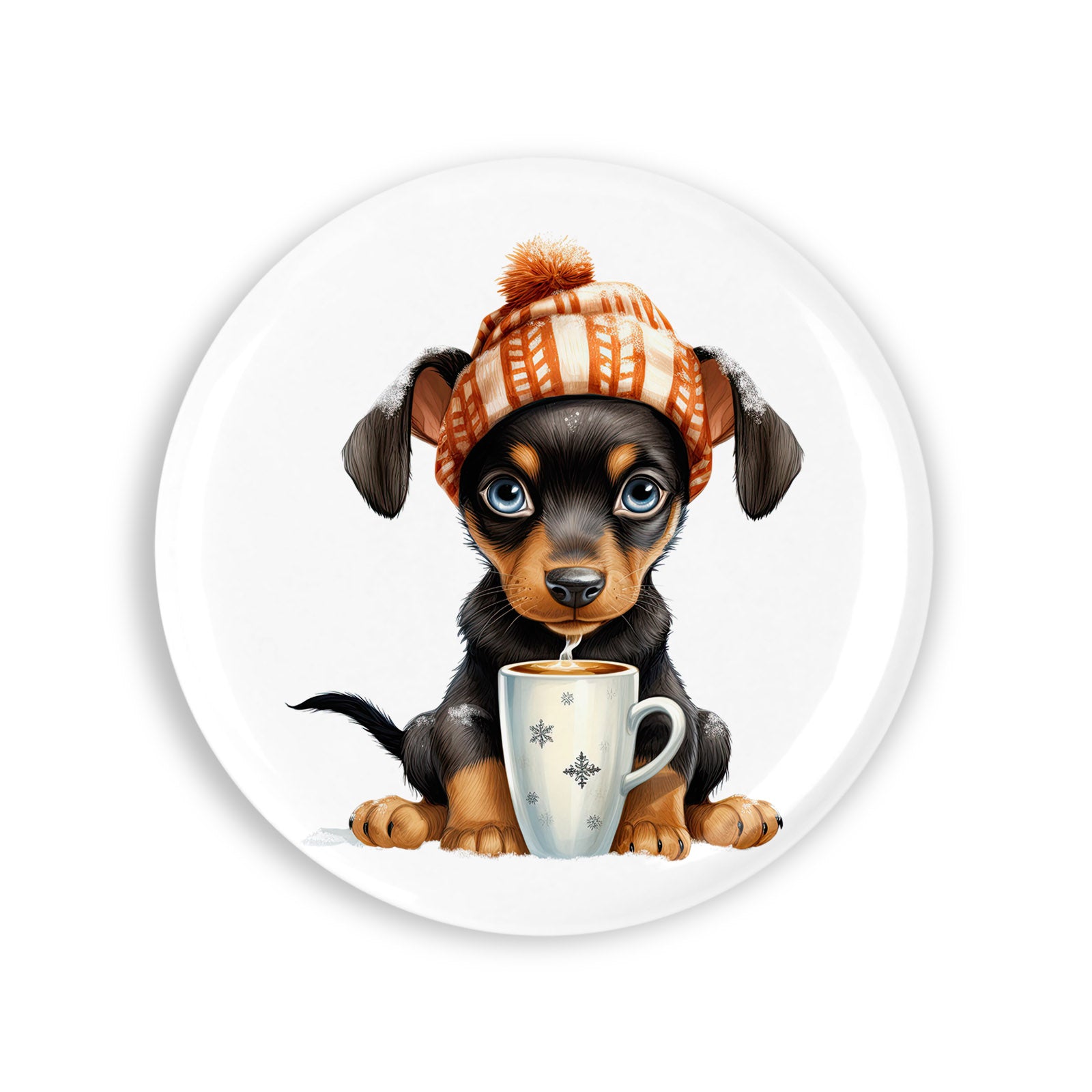 Set 4 insigne, Doberman bea cafea, NO5107, Metal, 44 mm, Multicolor