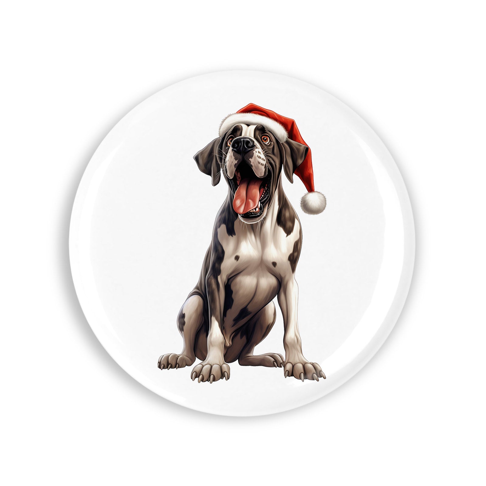Set 4 insigne, Dog german cu caciula de craciun, NO5740, Metal, 44 mm, Multicolor
