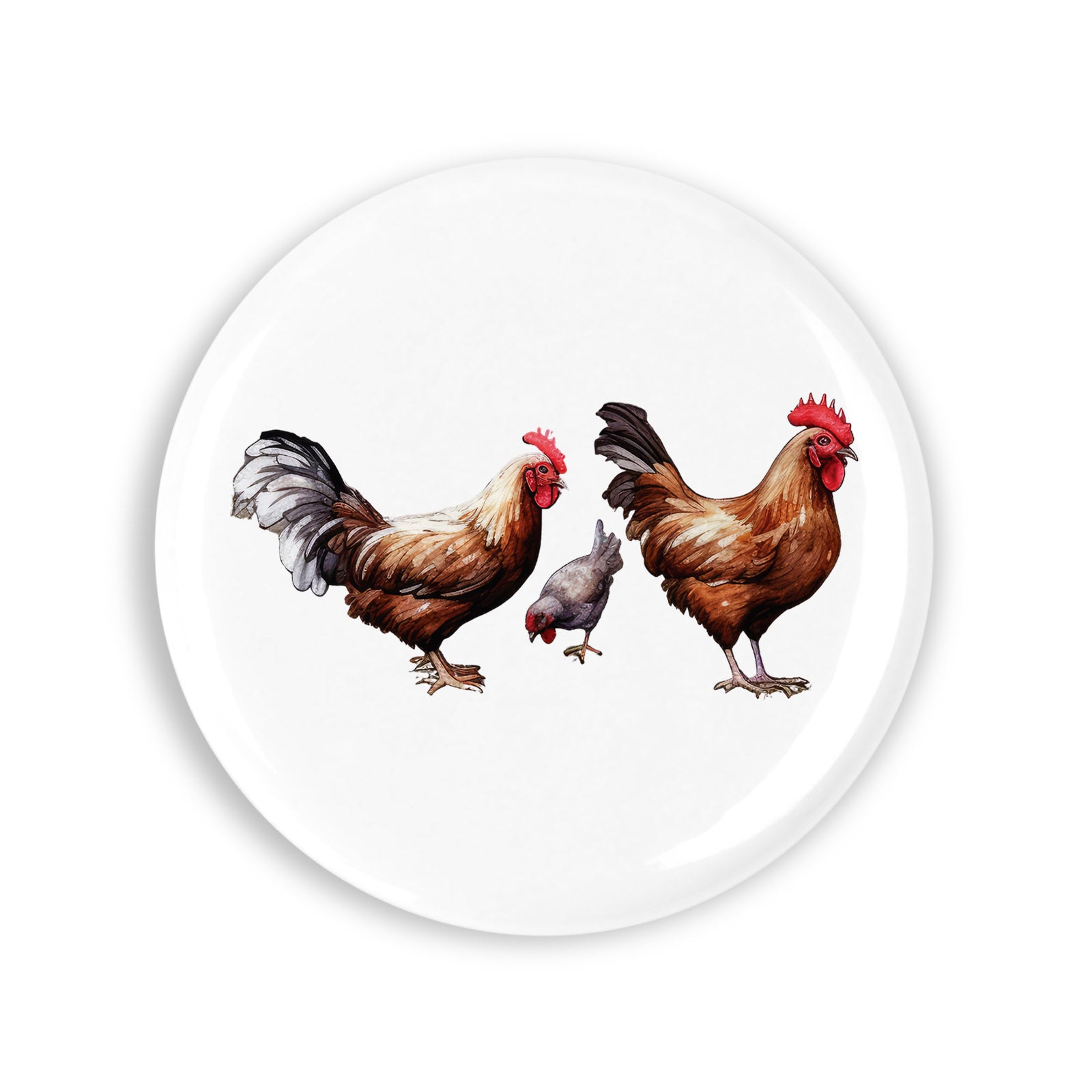 Set 4 insigne, Doi cocosi si o gaina, NO2343, Metal, 44 mm, Multicolor