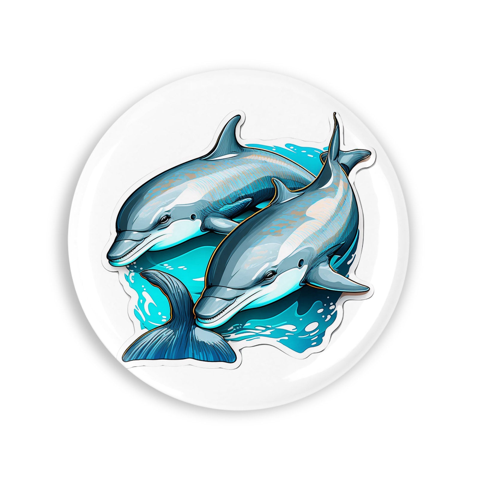 Set 4 insigne, Doi delfini jucausi, NO9881, Metal, 44 mm, Multicolor