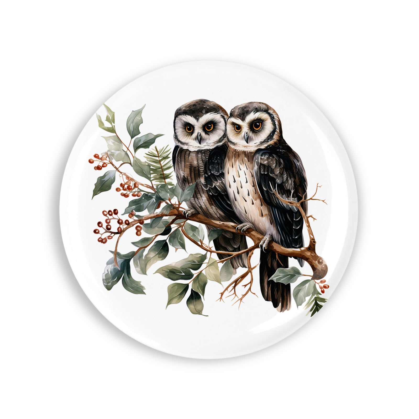 Set 4 insigne, Doua bufnite pe creanga, NO1294, Metal, 44 mm, Multicolor