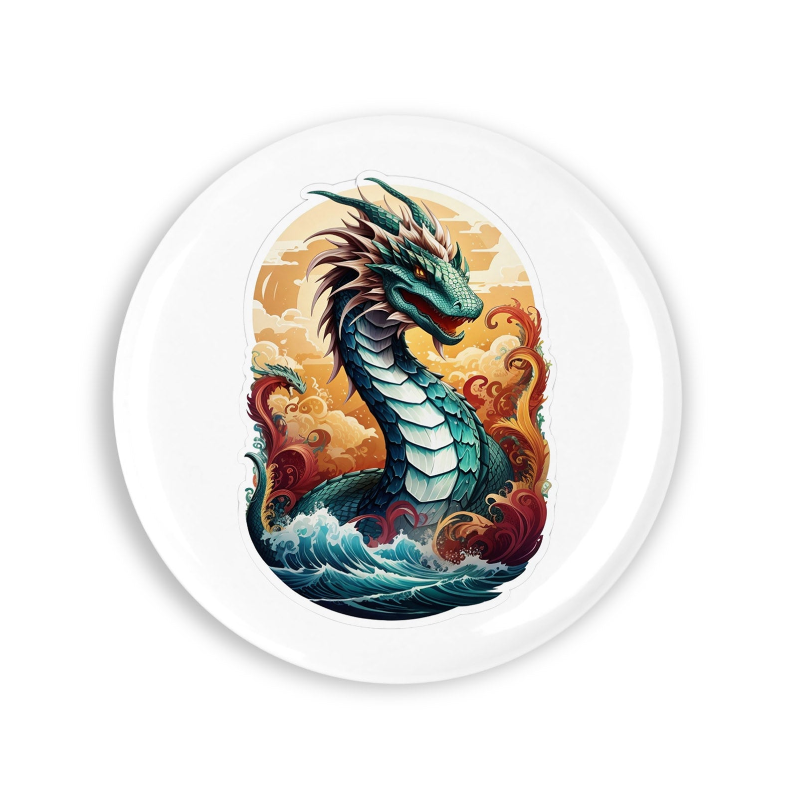 Set 4 insigne, Dragon Sarpe de mare in valuri, NO8849, Metal, 44 mm, Multicolor