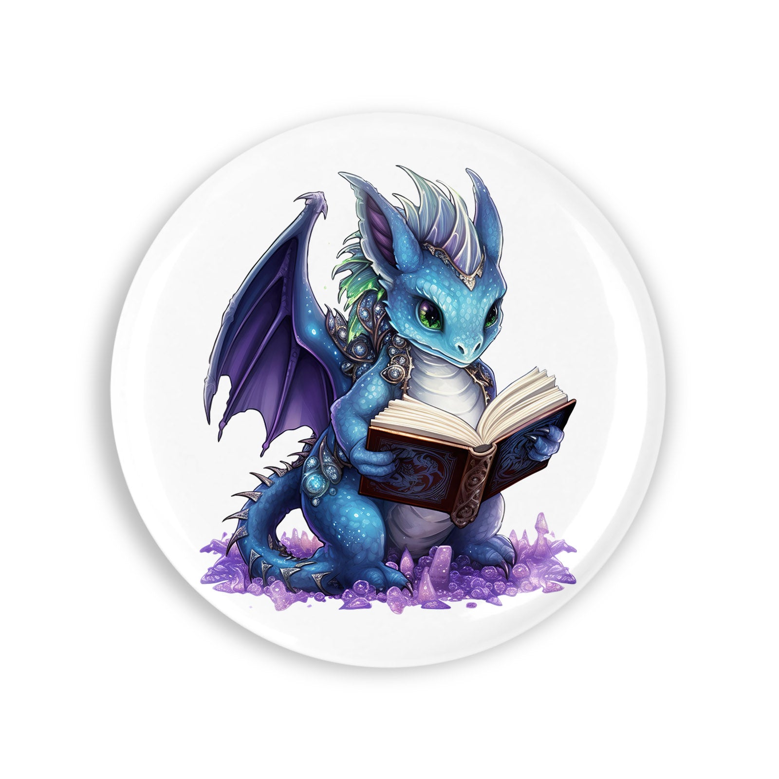 Set 4 insigne, Dragonul albastru citeste cartea magica, NO4509, Metal, 44 mm, Multicolor