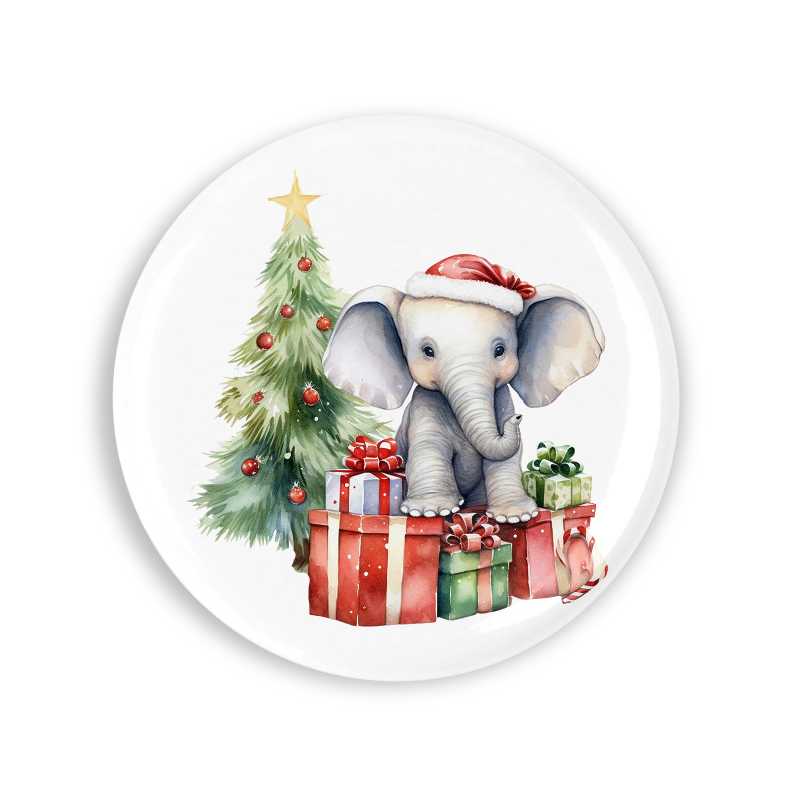 Set 4 insigne, Elefantul cu cadouri de craciun, NO4204, Metal, 44 mm, Multicolor