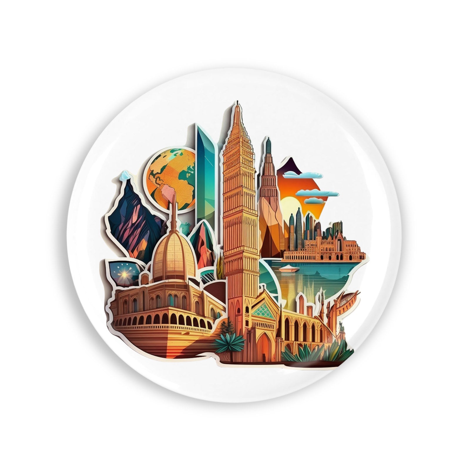 Set 4 insigne, Elemente simbol din capitalele lumii, NO10013, Metal, 44 mm, Multicolor