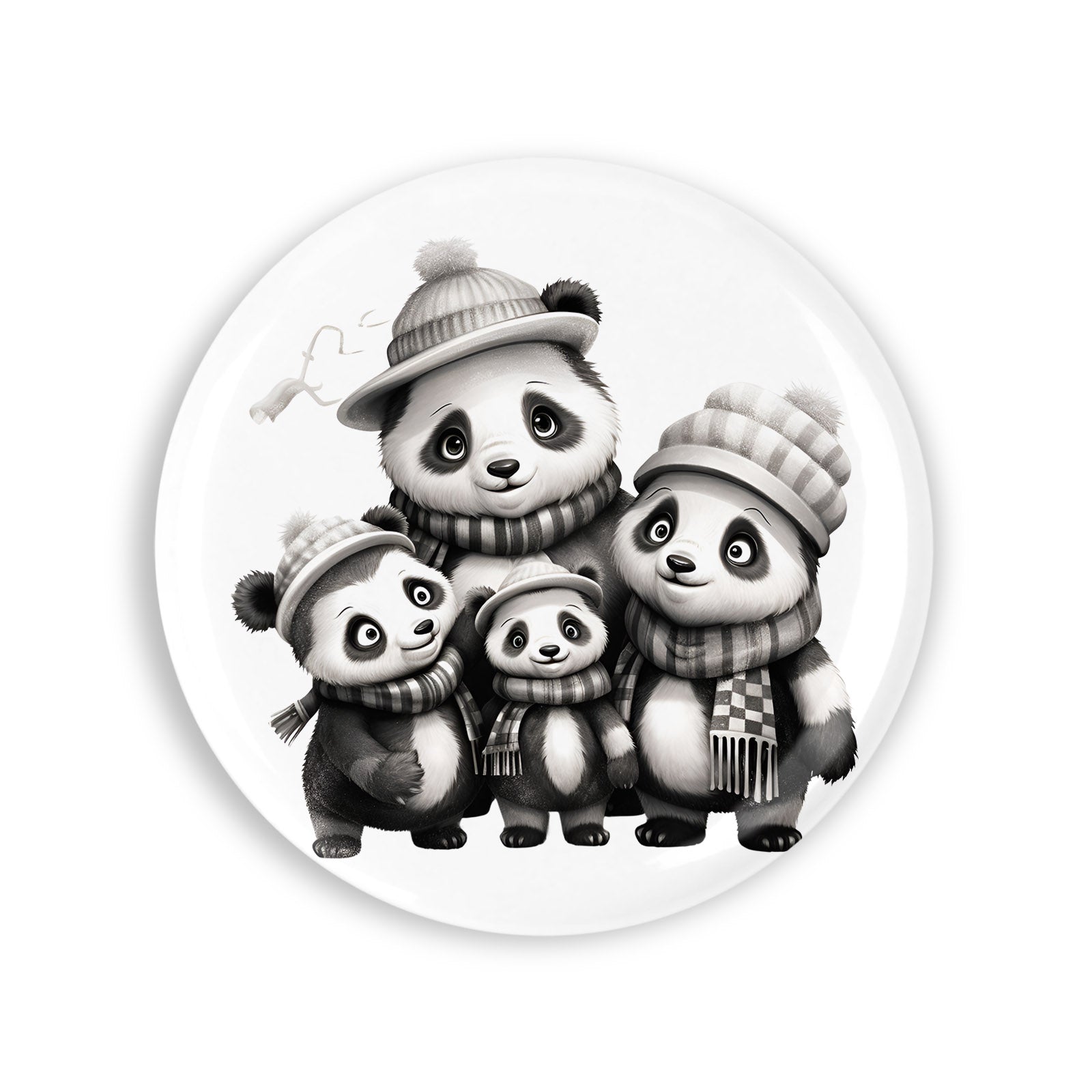 Set 4 insigne, Familie de ursi panda, NO6524, Metal, 44 mm, Multicolor