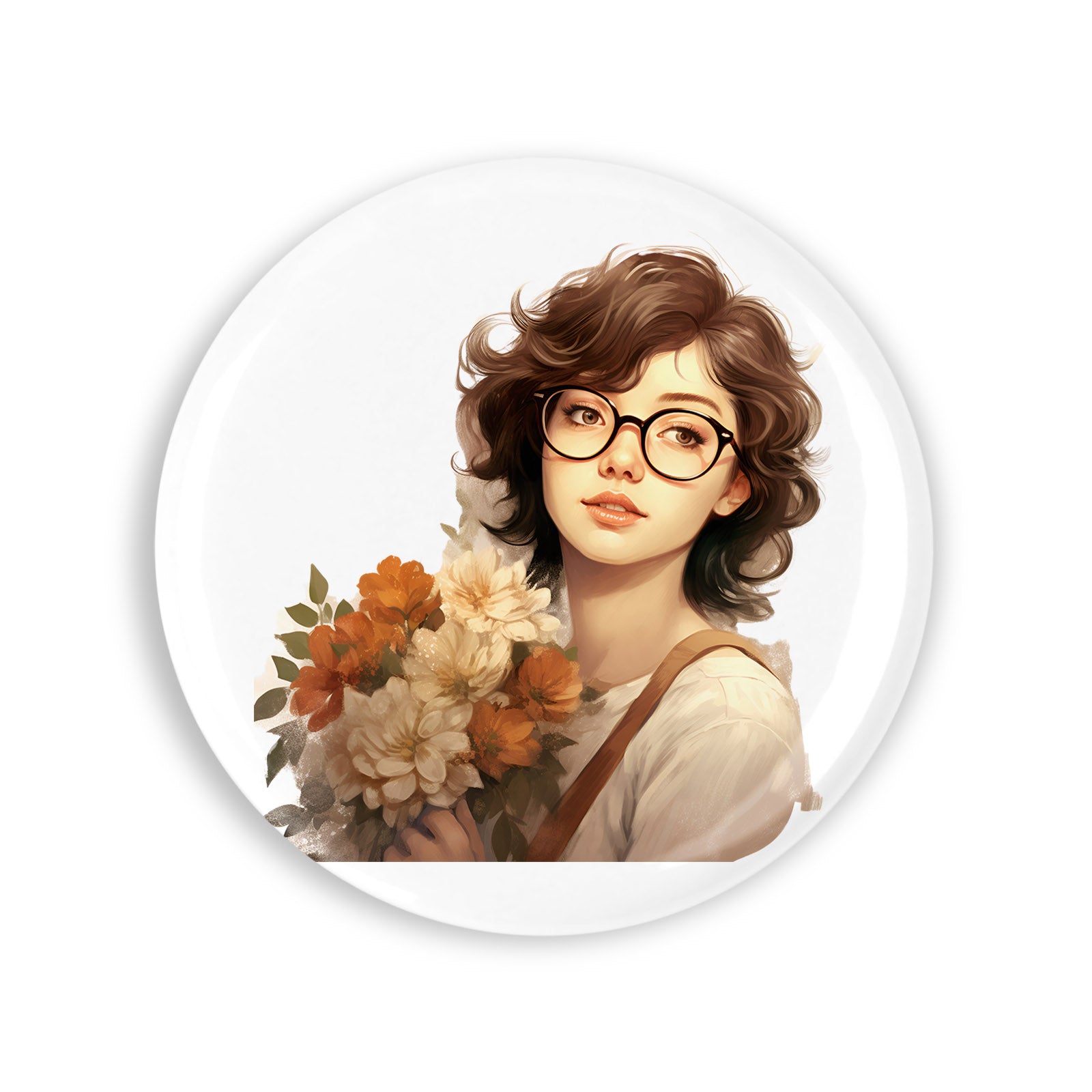 Set 4 insigne, Fata cu buchet de flori, NO1122, Metal, 44 mm, Multicolor