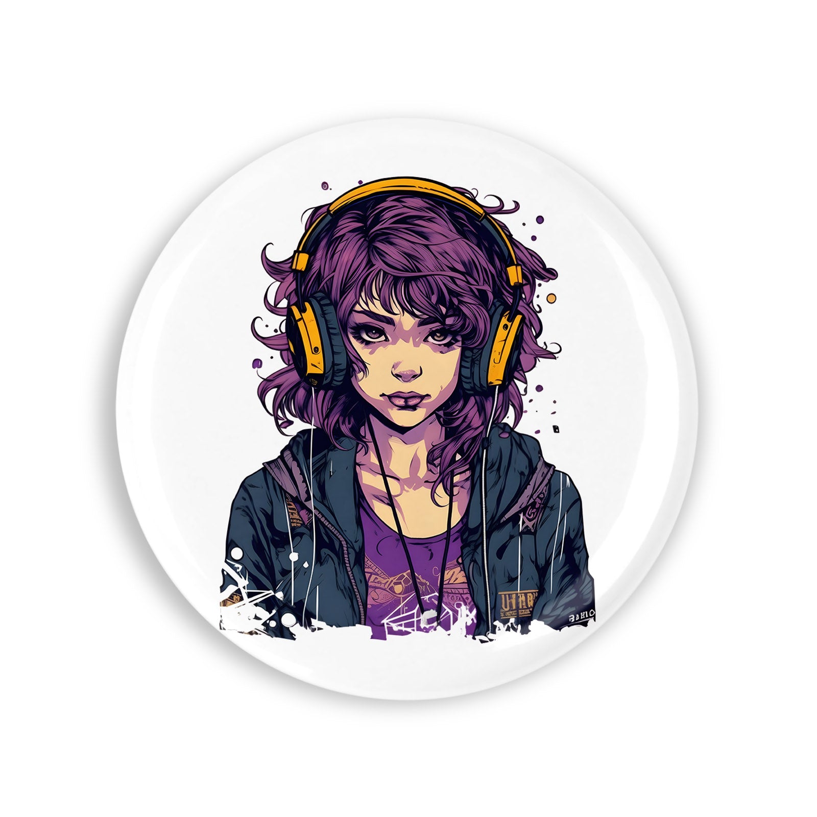 Set 4 insigne, Fata cu casti si geaca albastra, NO1324, Metal, 44 mm, Multicolor