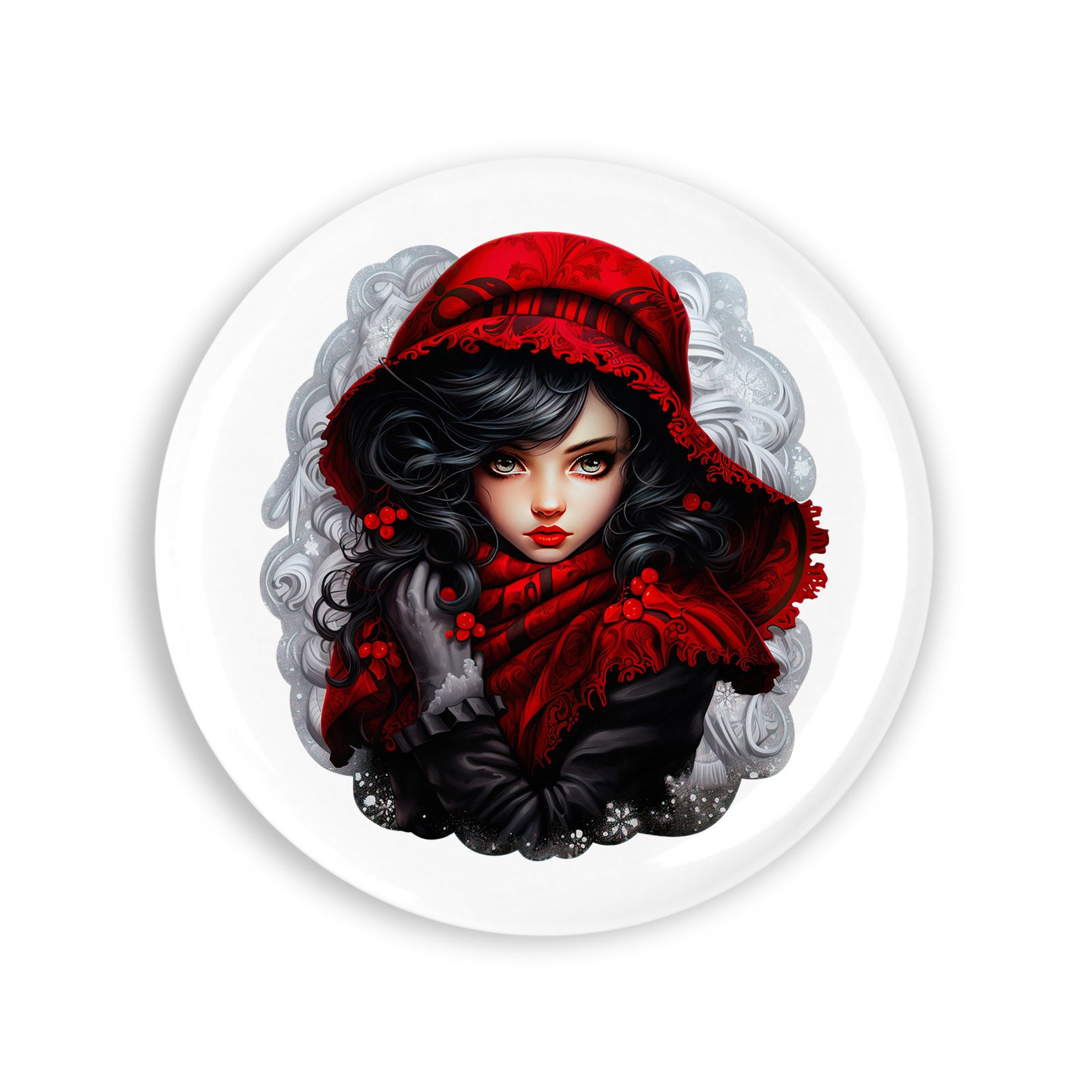 Set 4 insigne, Fata cu haina neagra si palarie rosie, NO3063, Metal, 44 mm, Multicolor