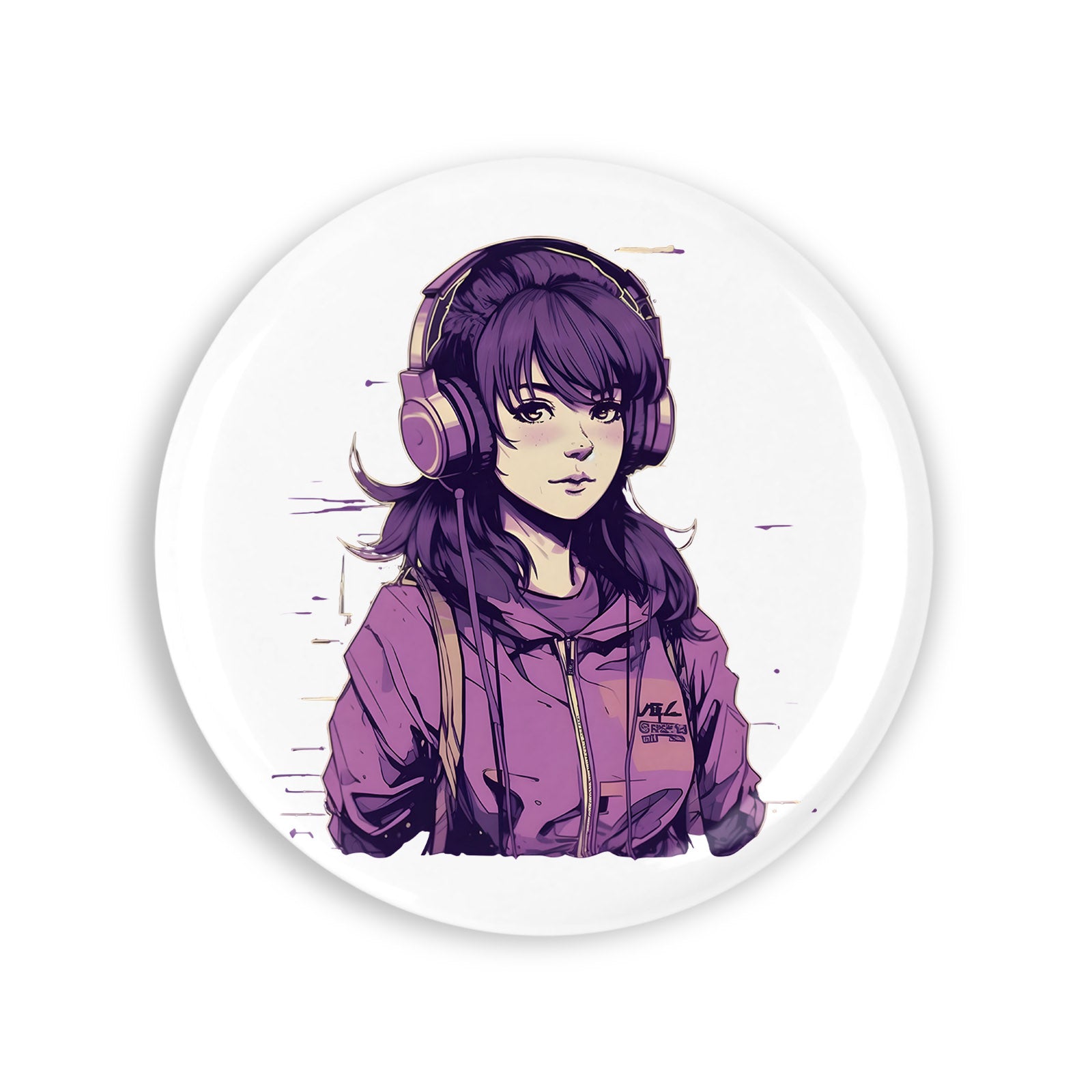 Set 4 insigne, Fata cu hanorac si cu casti, NO6342, Metal, 44 mm, Multicolor