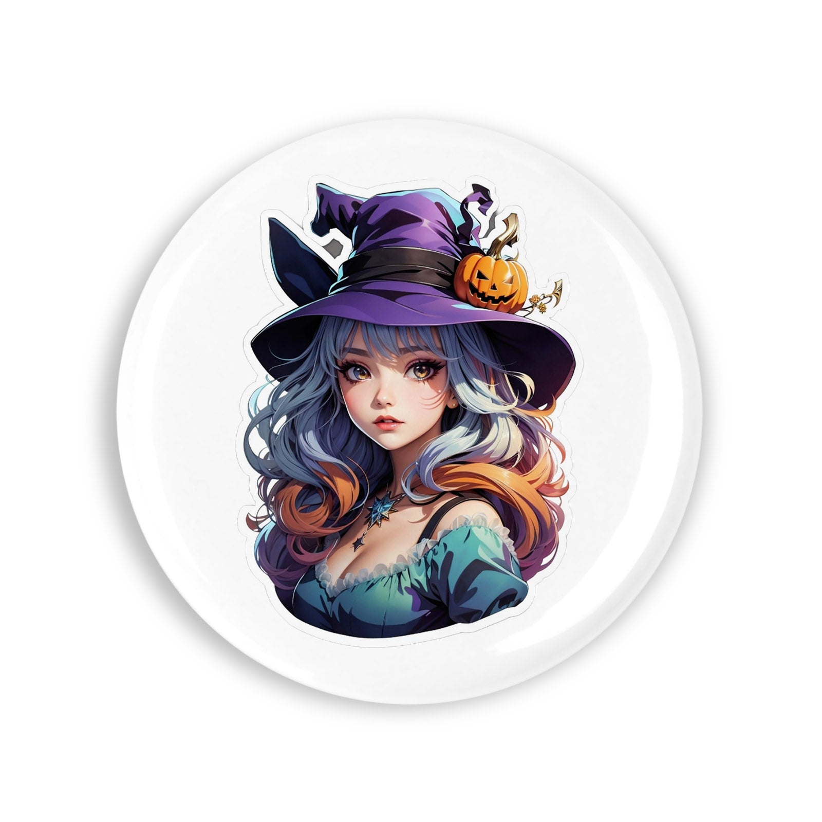 Set 4 insigne, Fata cu palarie de halloween, NO7037, Metal, 44 mm, Multicolor