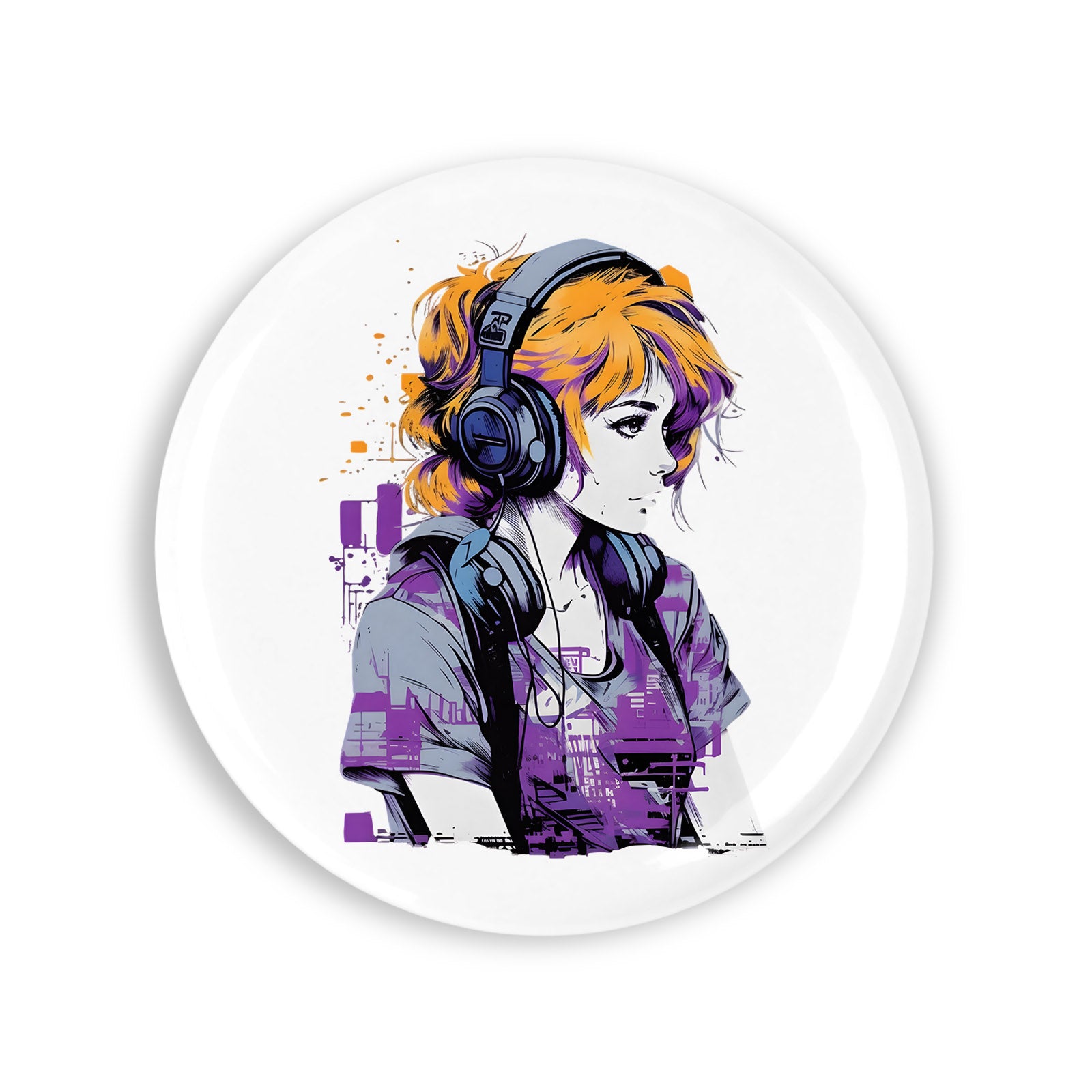Set 4 insigne, Fata cu parul galben si cu casti, NO5342, Metal, 44 mm, Multicolor