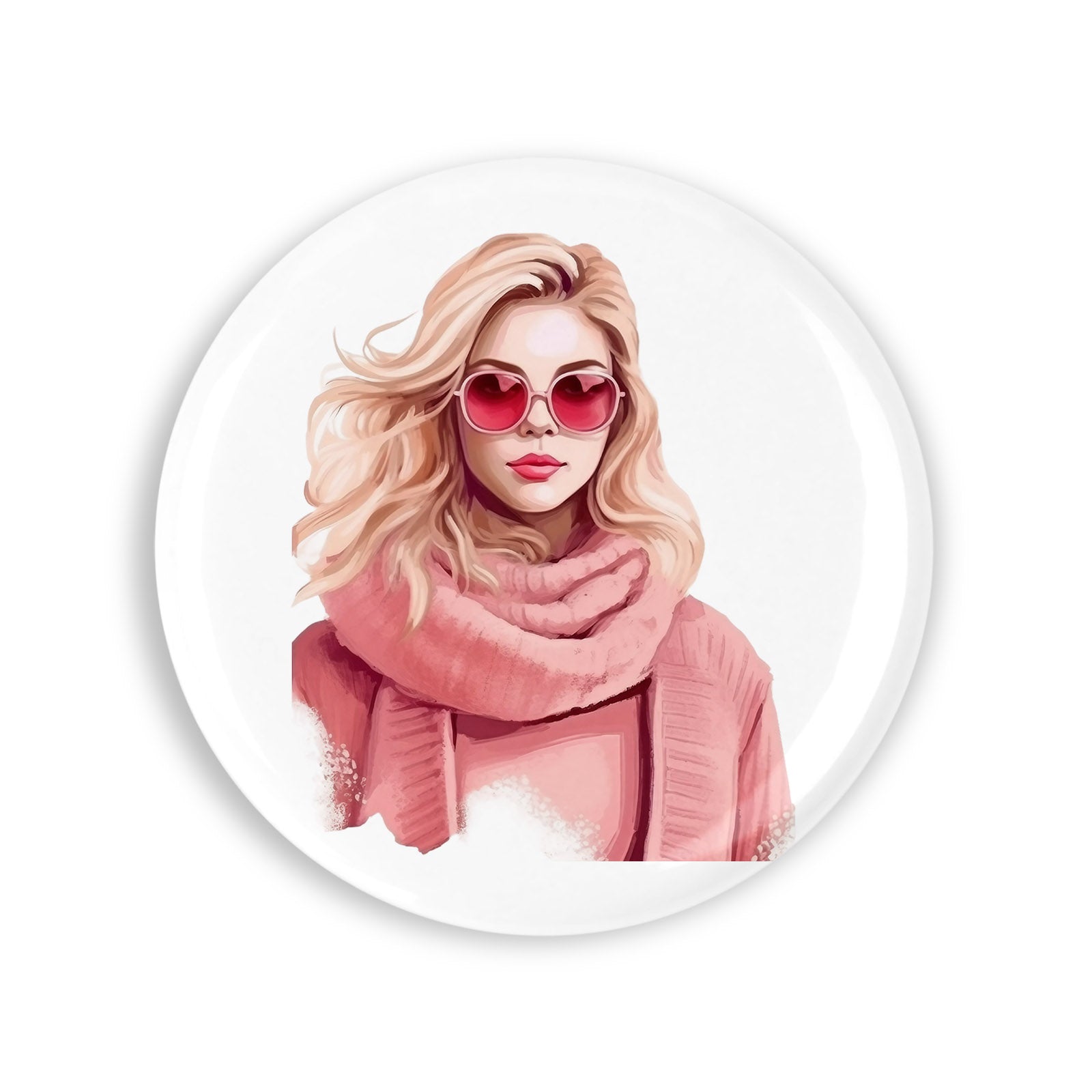 Set 4 insigne, Fata in roz Chan, NO4343, Metal, 44 mm, Multicolor