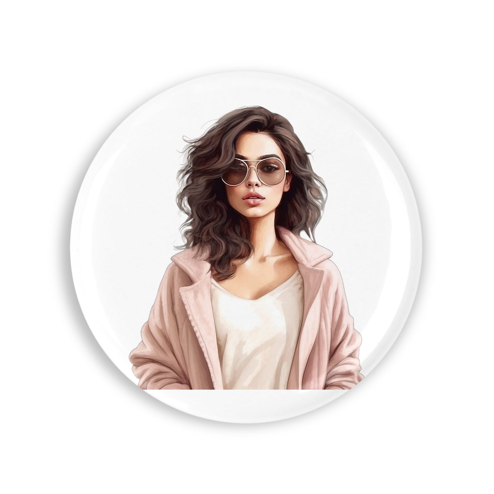 Set 4 insigne, Fata in roz Erika, NO5183, Metal, 44 mm, Multicolor