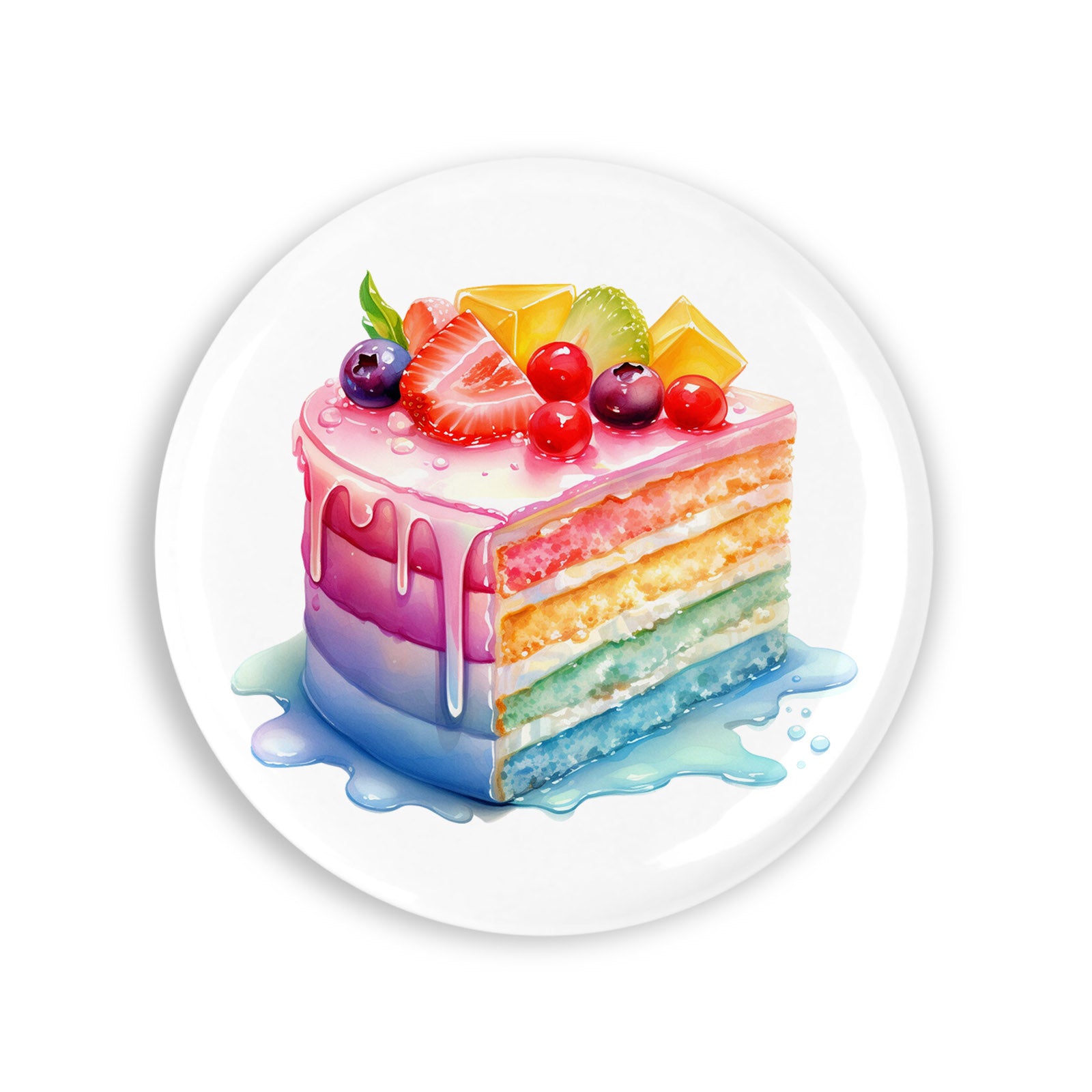 Set 4 insigne, Felie de tort curcubeu cu fructe, NO3621, Metal, 44 mm, Multicolor
