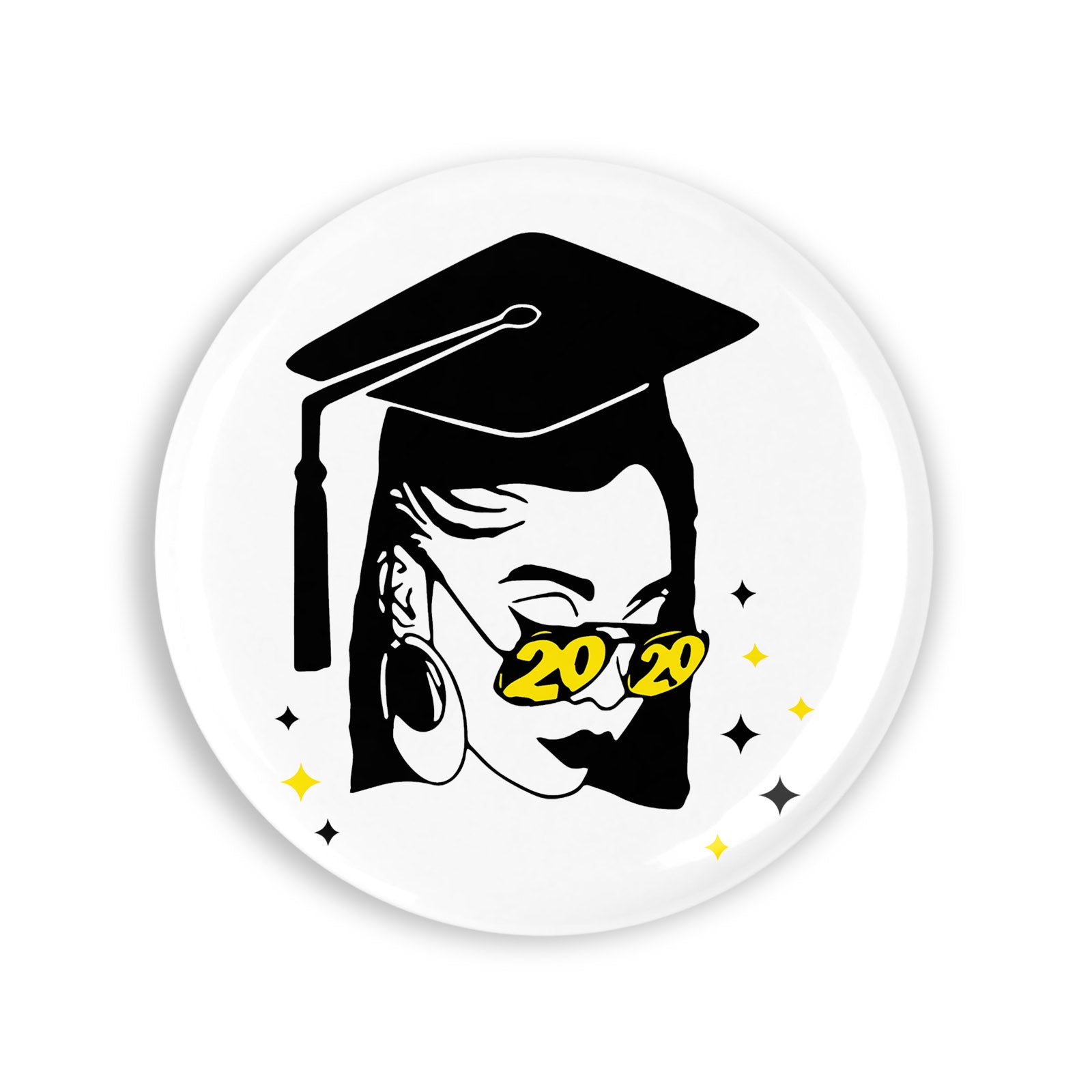 Set 4 insigne, Femeie afro absolventa 2020, NO10082, Metal, 44 mm, Multicolor