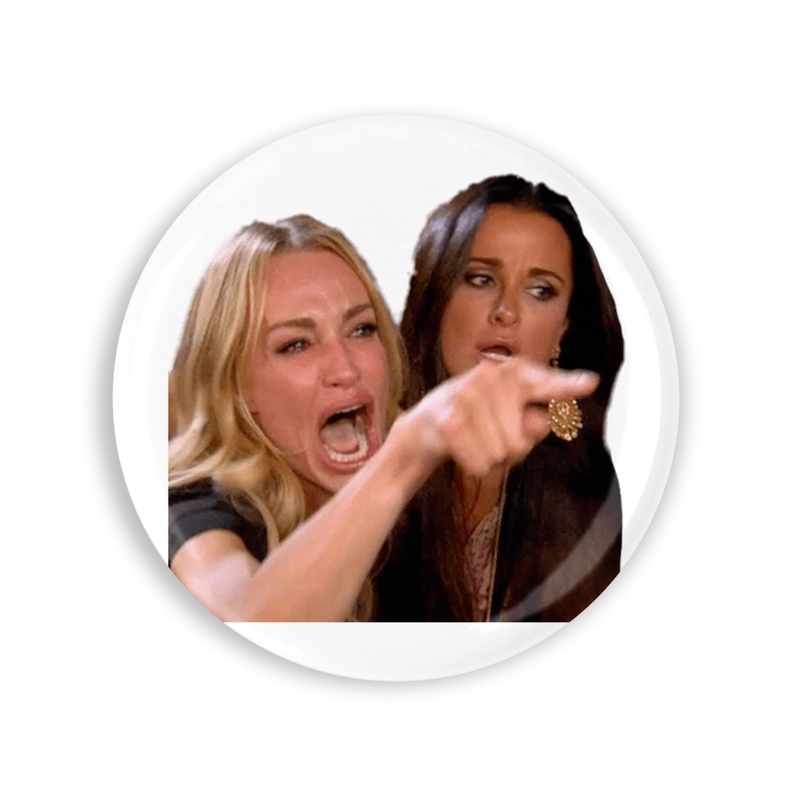 Set 4 insigne, Femeie care tipa la pisica meme, NO10088, Metal, 44 mm, Multicolor