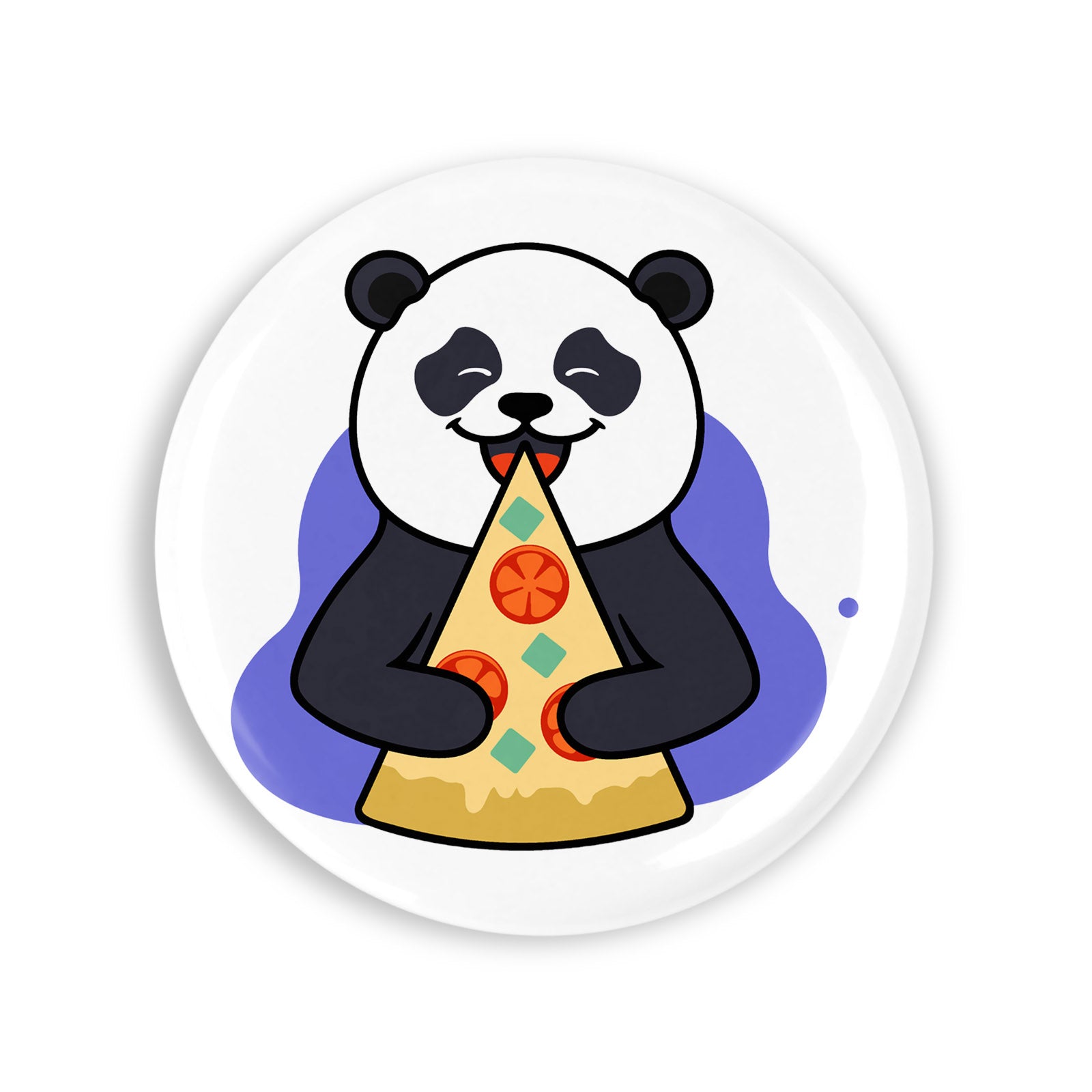 Set 4 insigne, Fericitul Panda cu pizza, NO10092, Metal, 44 mm, Multicolor