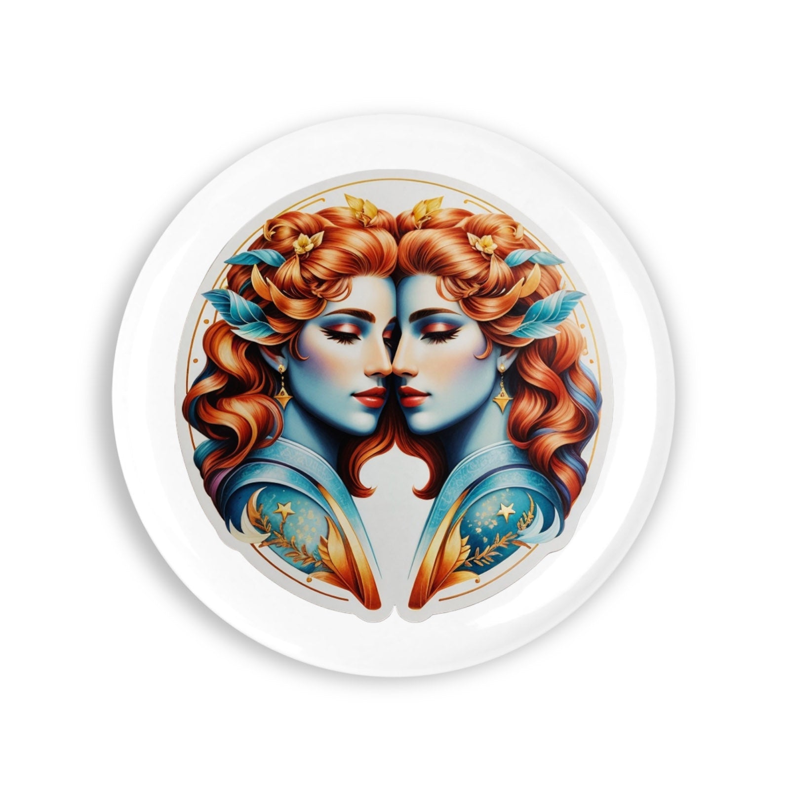 Set 4 insigne, Fete simbol zodia gemeni, NO8214, Metal, 44 mm, Multicolor