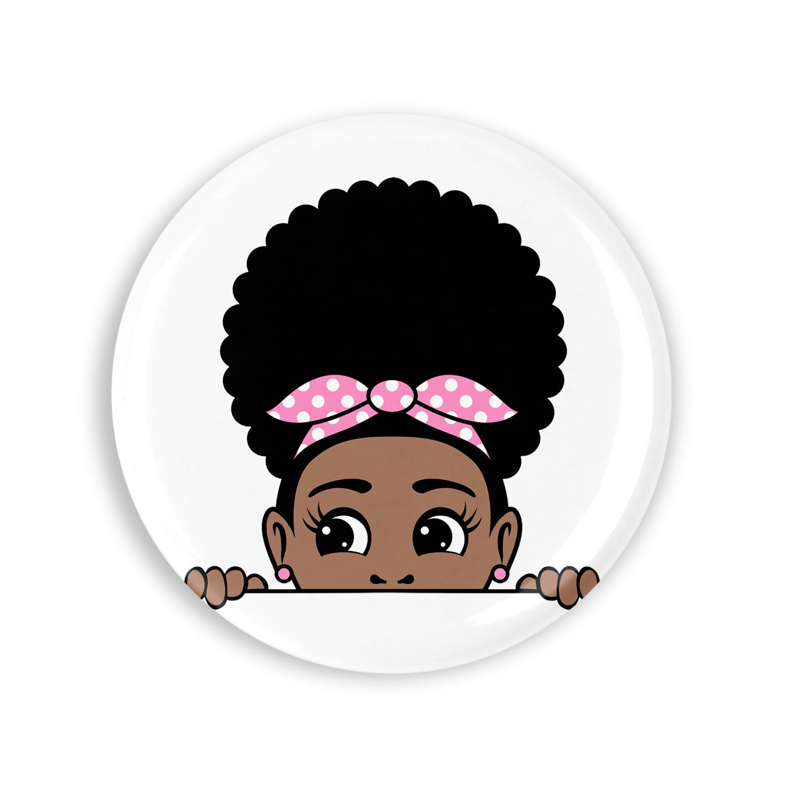 Set 4 insigne, Fetita afro cu bentita roz, NO10095, Metal, 44 mm, Multicolor