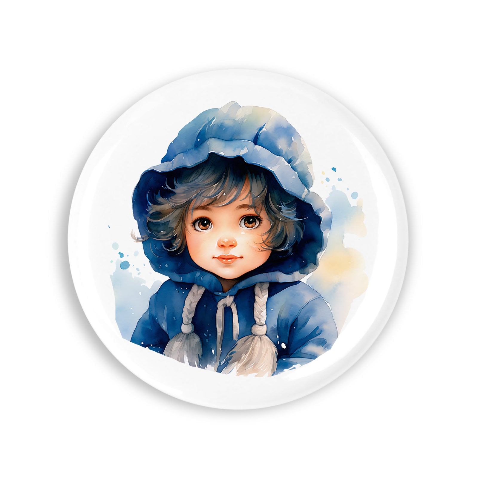 Set 4 insigne, Fetita cu gluga albastra, NO4574, Metal, 44 mm, Multicolor