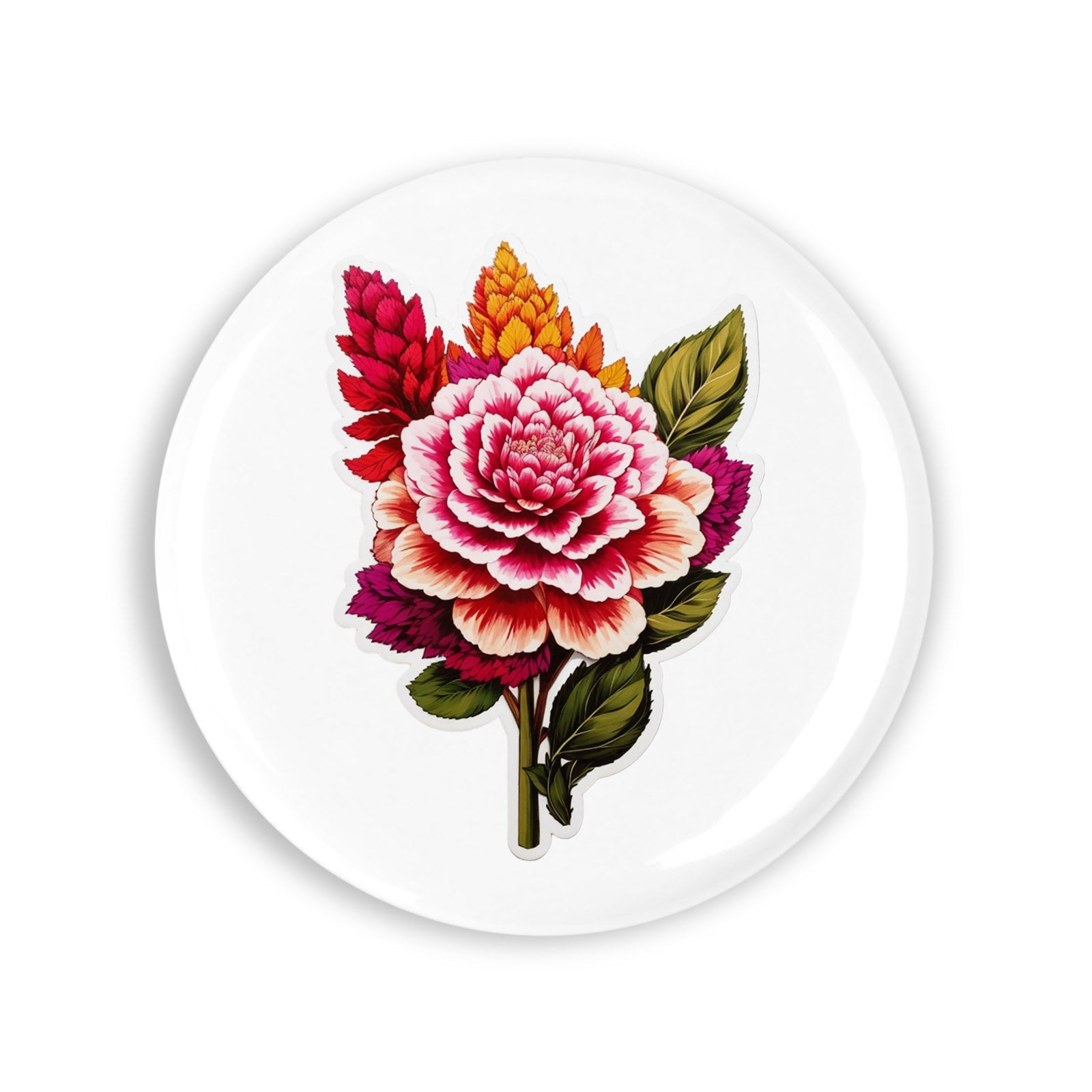 Set 4 insigne, Floare Creasta cocosului cu codita scurta, NO7957, Metal, 44 mm, Multicolor