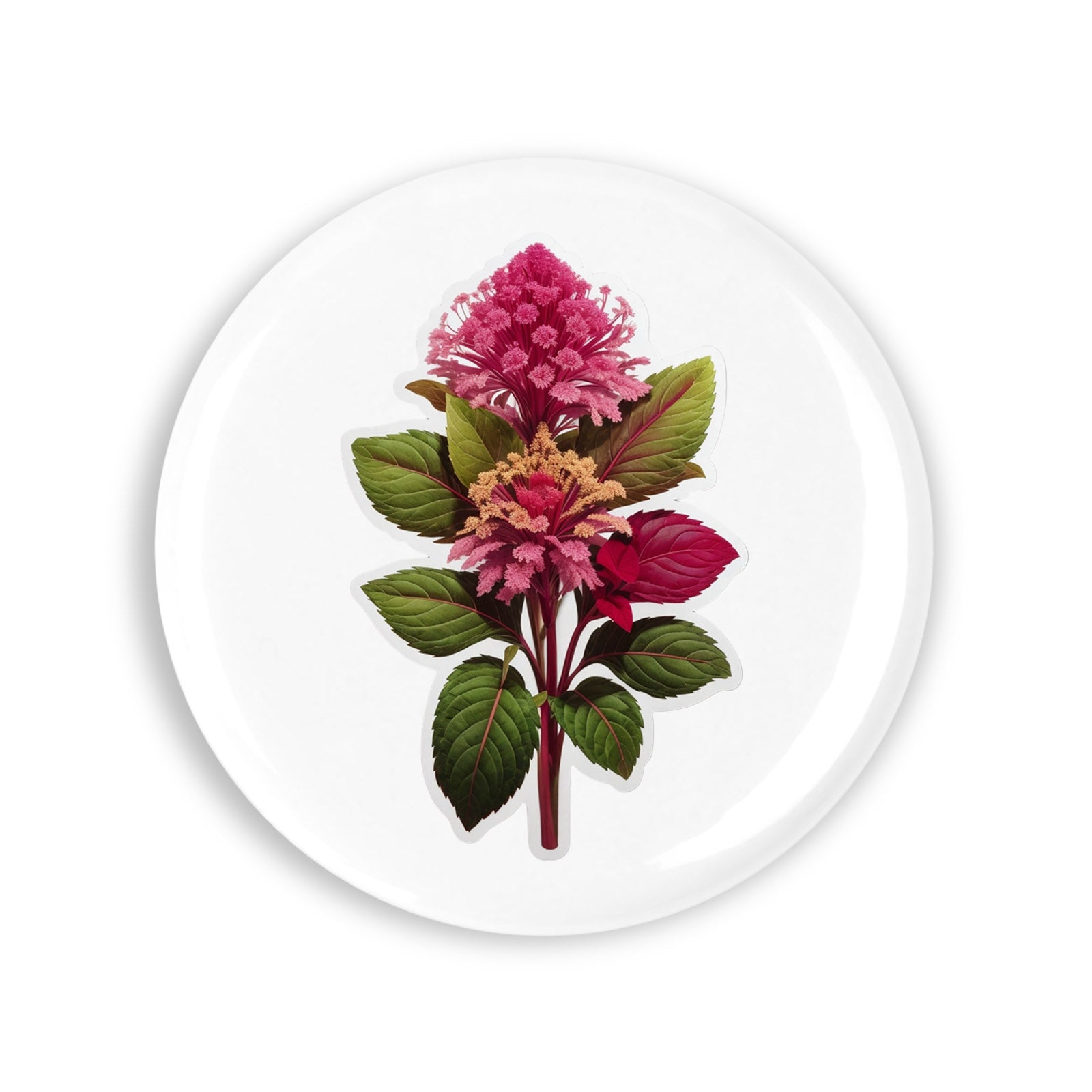 Set 4 insigne, Floare de Amaranth cu frunze, NO7617, Metal, 44 mm, Multicolor
