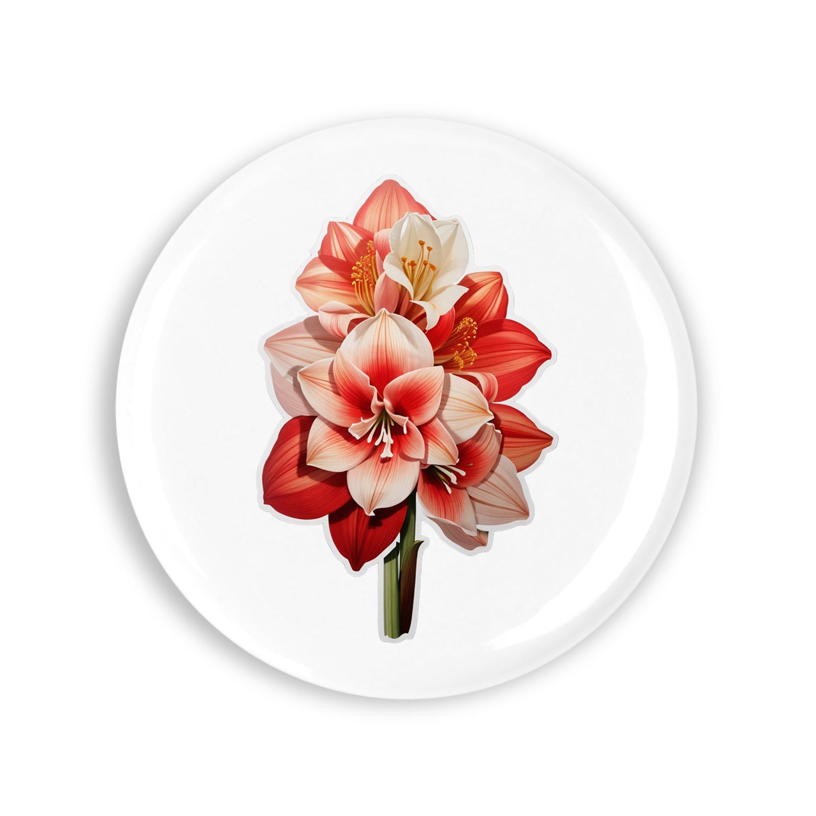 Set 4 insigne, Floare de Amaryllis cu coada scurta, NO7620, Metal, 44 mm, Multicolor