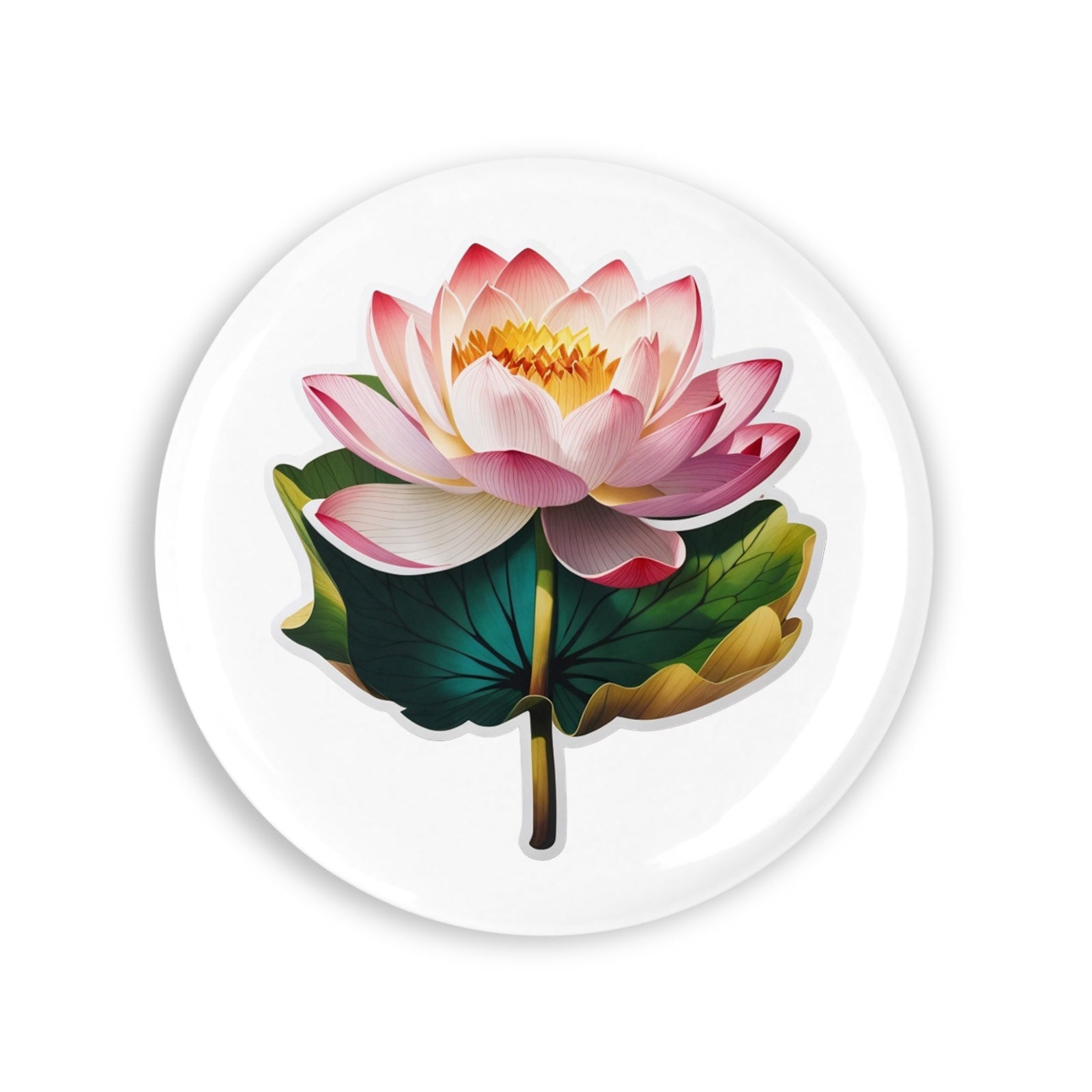 Set 4 insigne, Floare de lotus cu frunze, NO8468, Metal, 44 mm, Multicolor