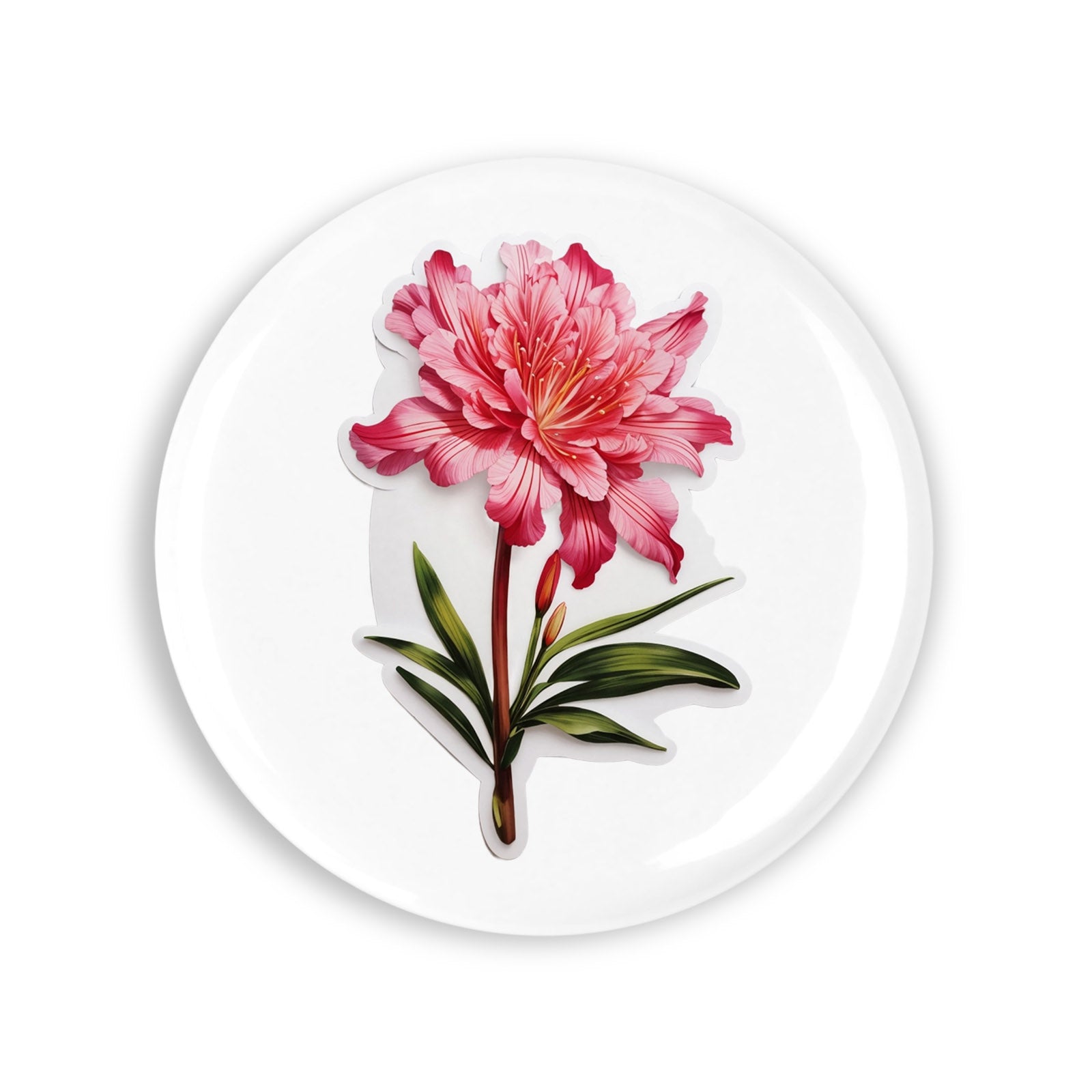 Set 4 insigne, Floare de Nerine cu frunze, NO8601, Metal, 44 mm, Multicolor