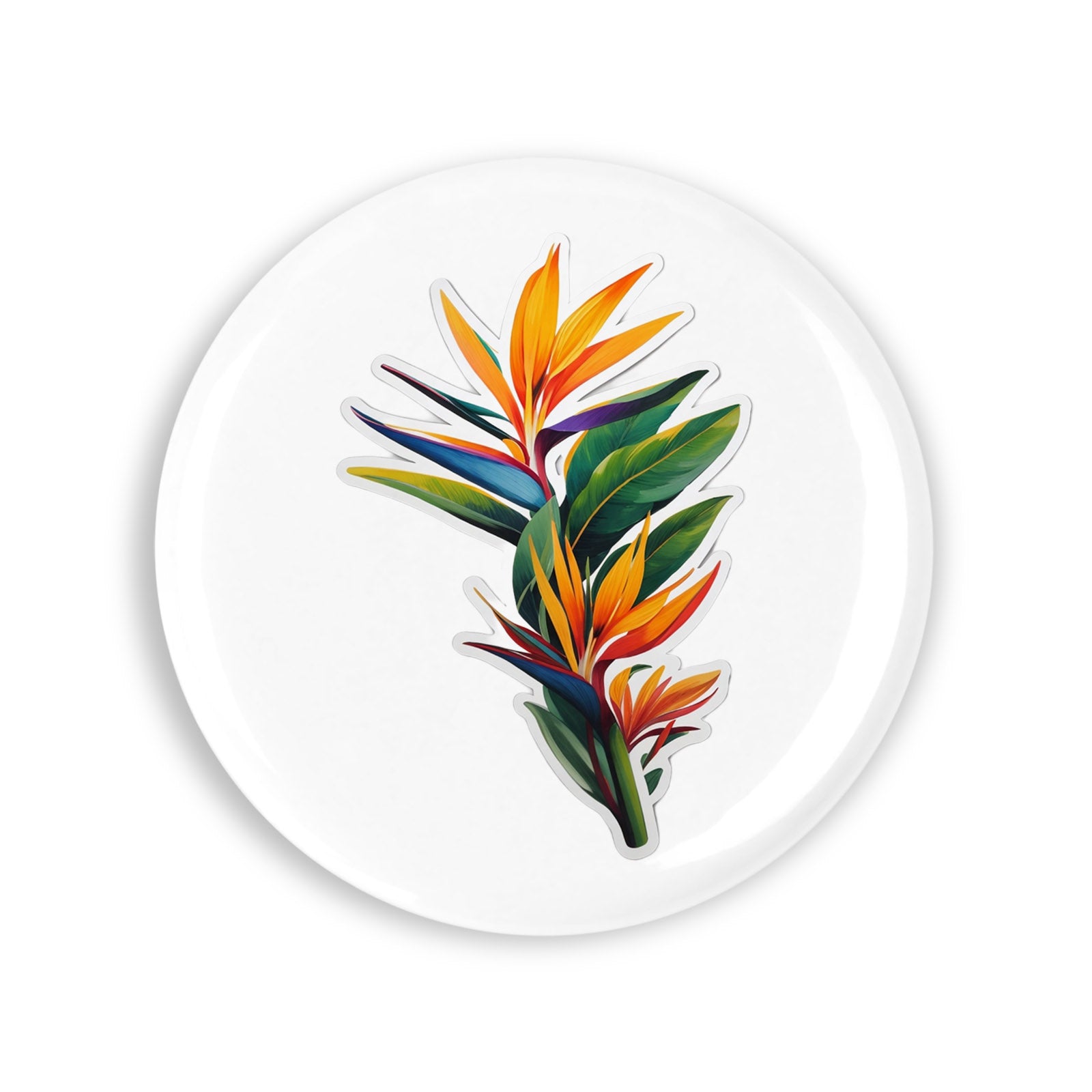 Set 4 insigne, Floare pasarea paradisului cu frunze, NO7816, Metal, 44 mm, Multicolor