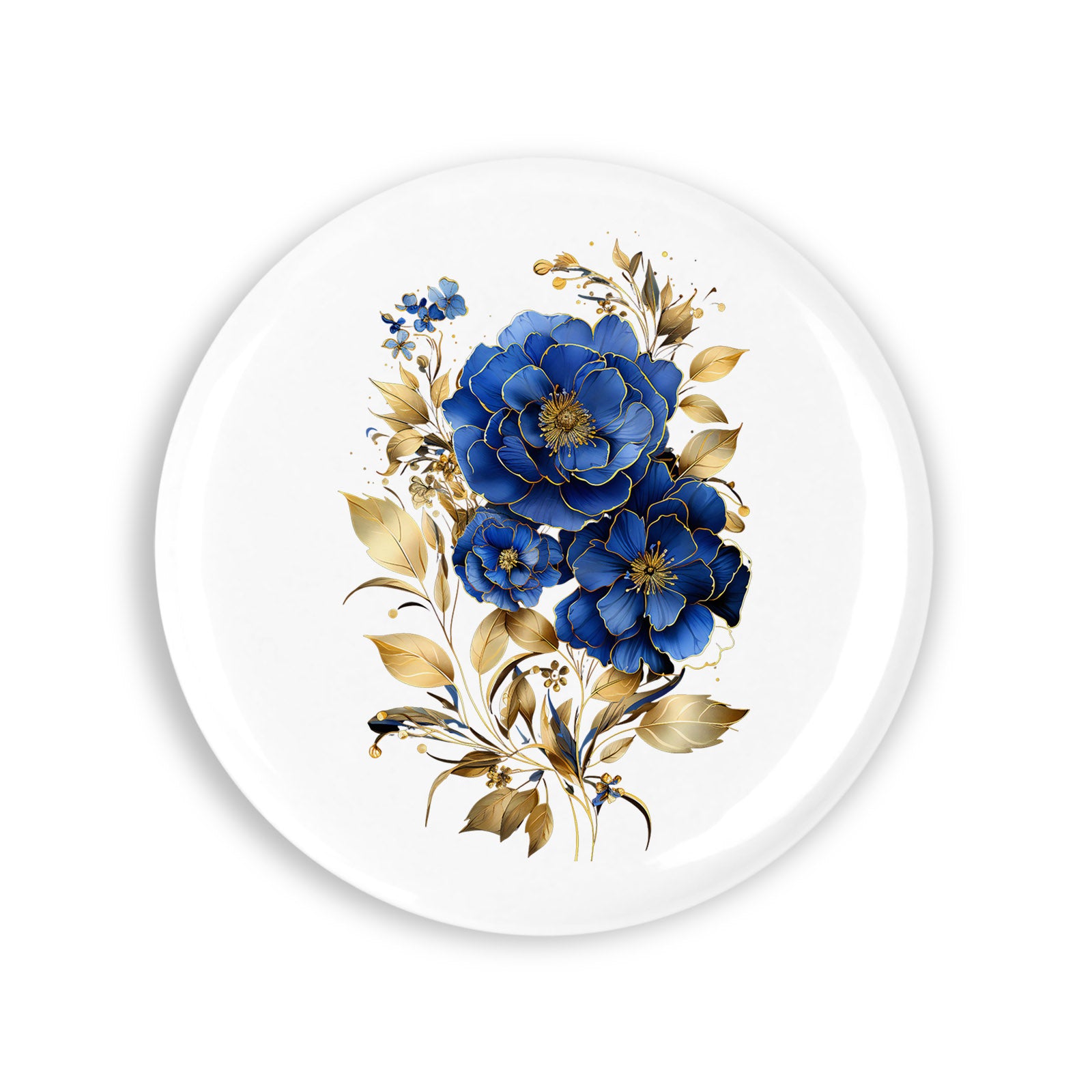 Set 4 insigne, Flori albastre cu frunze aurii, NO5220, Metal, 44 mm, Multicolor