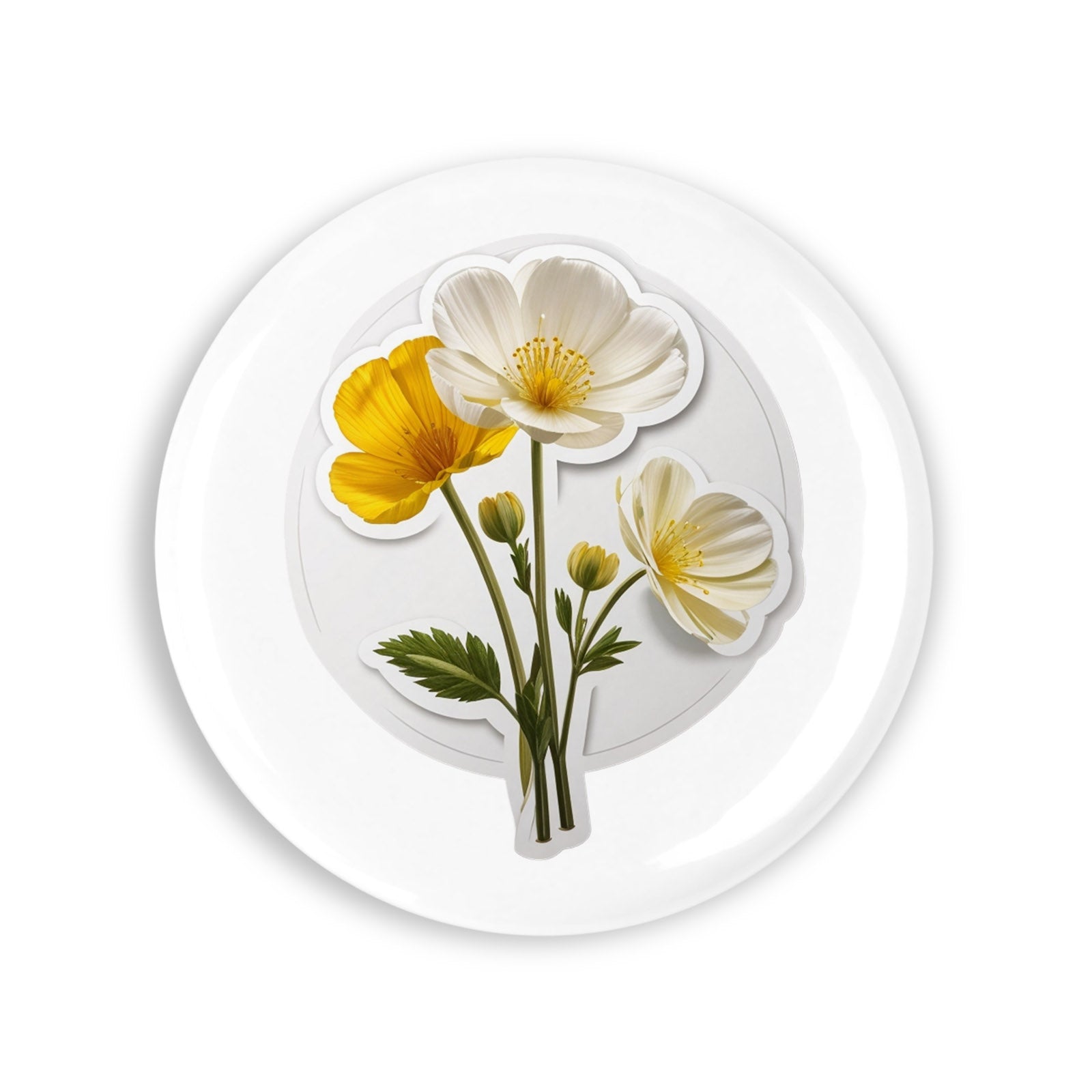 Set 4 insigne, Flori buttercup, NO7893, Metal, 44 mm, Multicolor