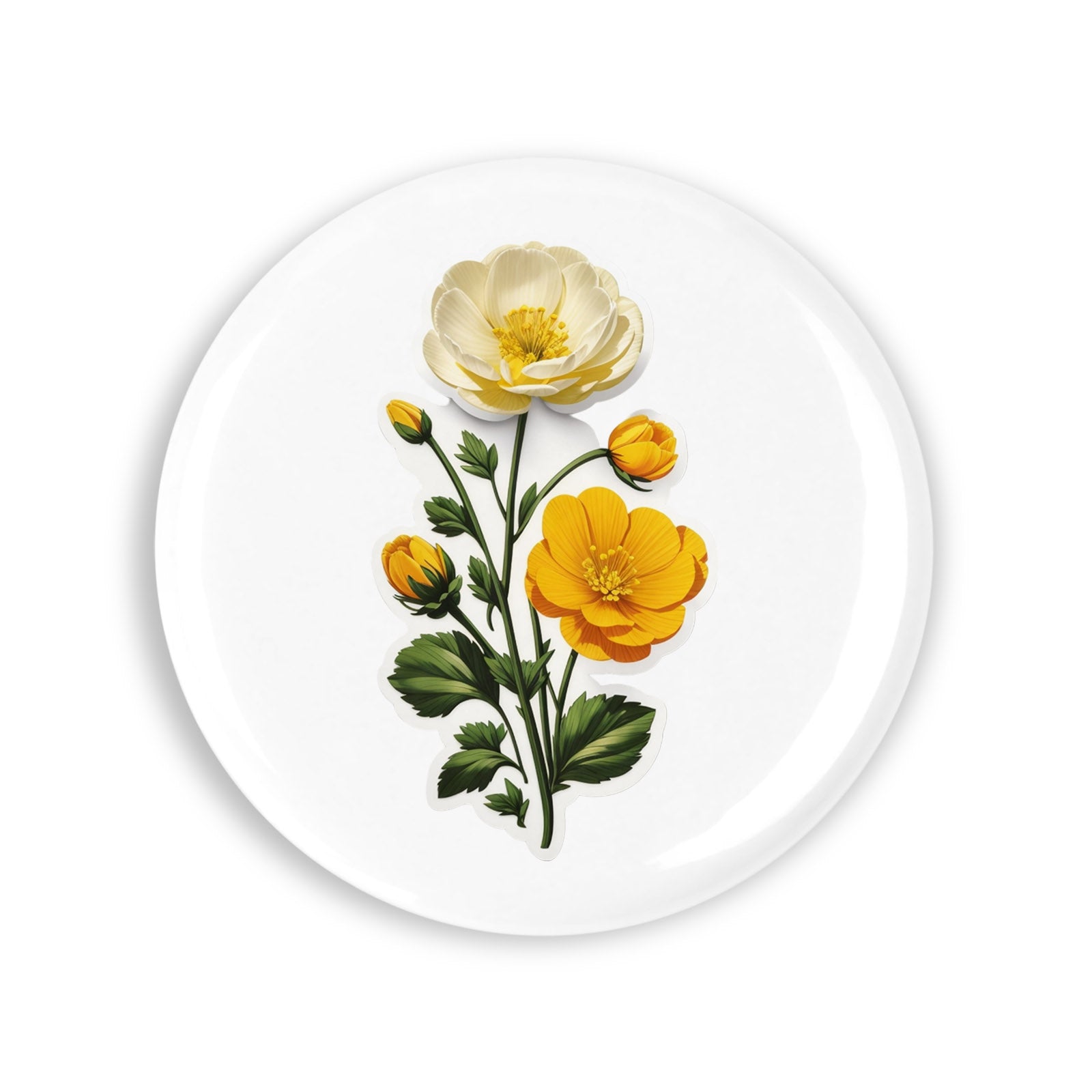 Set 4 insigne, Flori Buttercup, NO7894, Metal, 44 mm, Multicolor