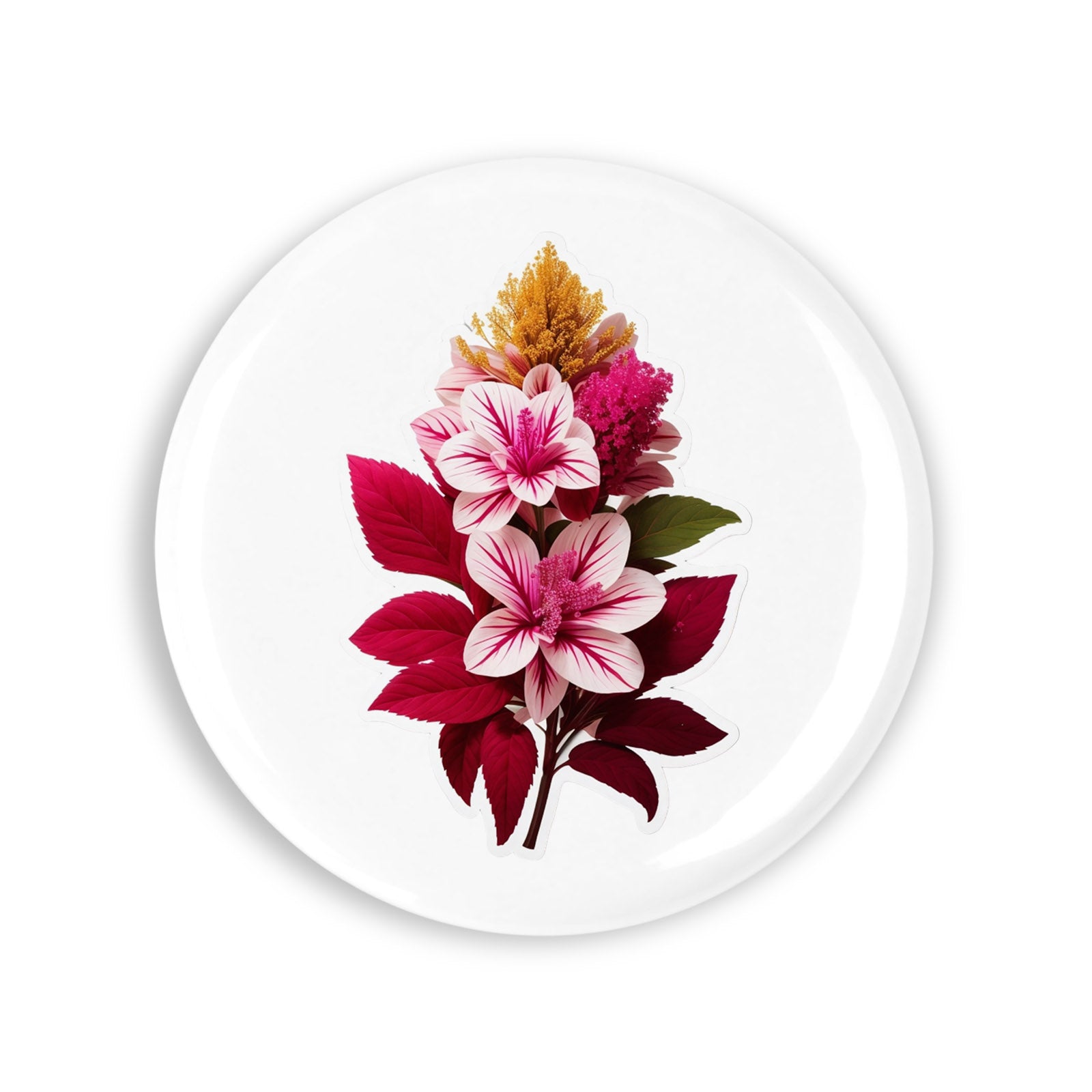 Set 4 insigne, Flori de Amaranth ascutite, NO7618, Metal, 44 mm, Multicolor