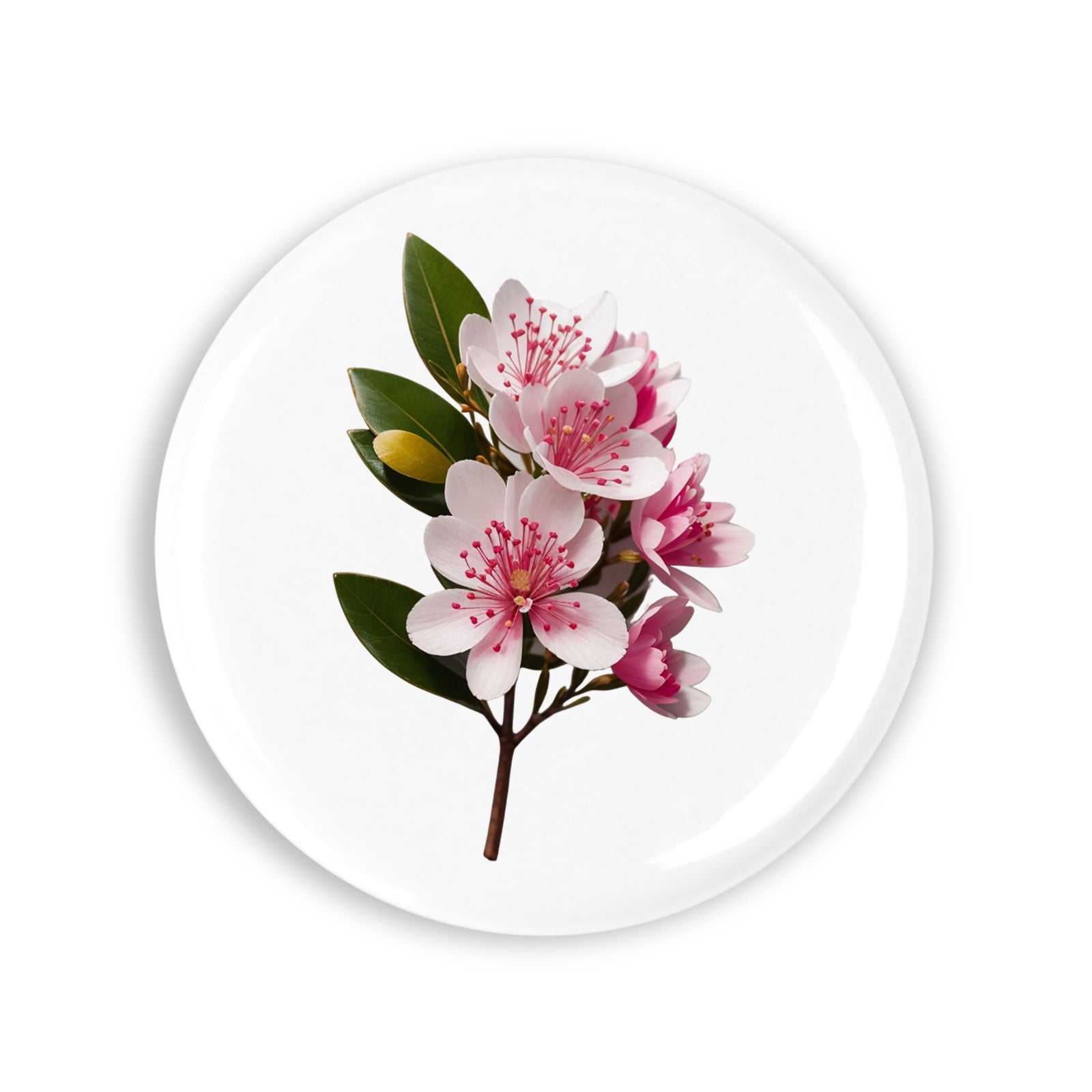 Set 4 insigne, Flori de ceara crenguta cu flori si frunze, NO9044, Metal, 44 mm, Multicolor