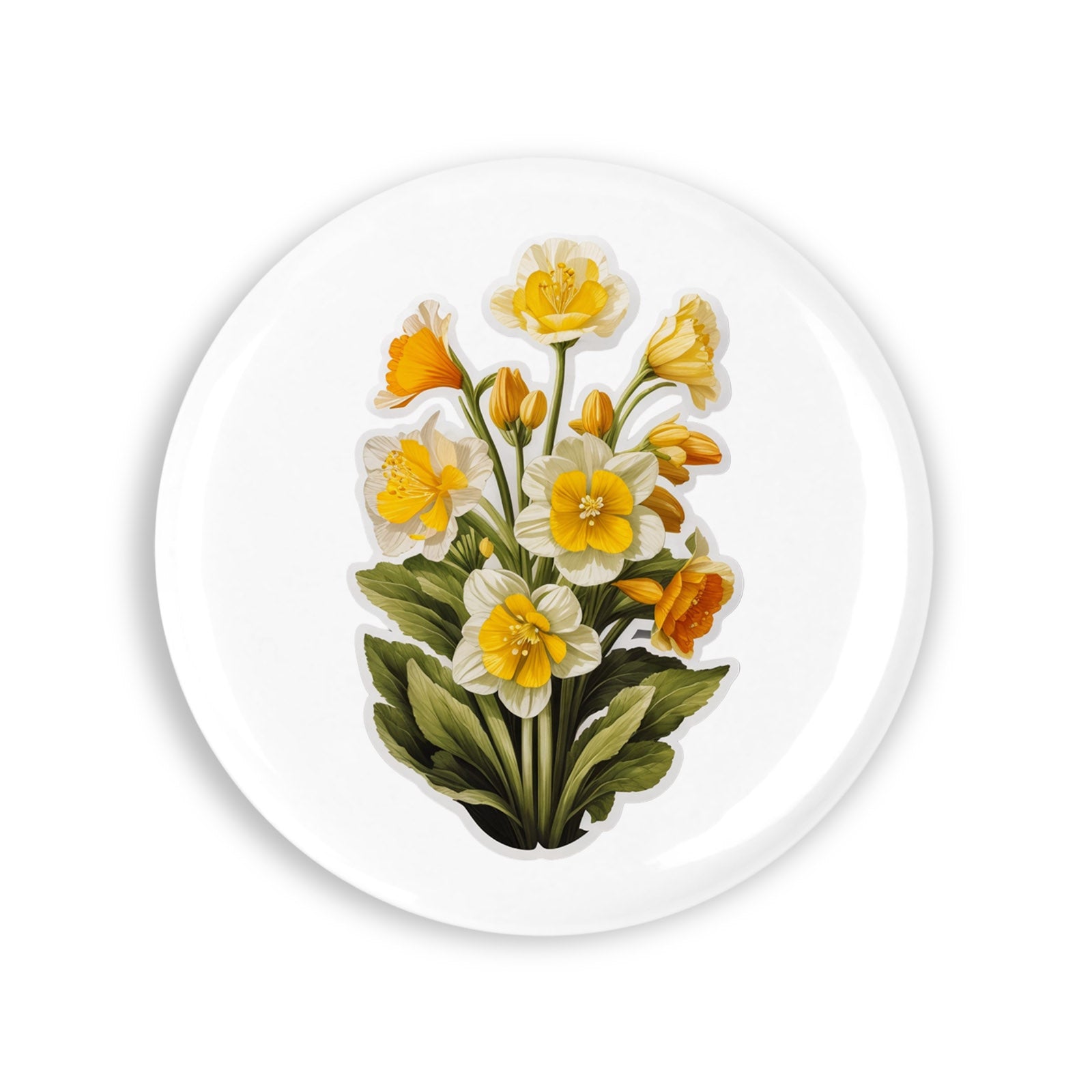 Set 4 insigne, Flori de ciubotica cucului, NO8027, Metal, 44 mm, Multicolor