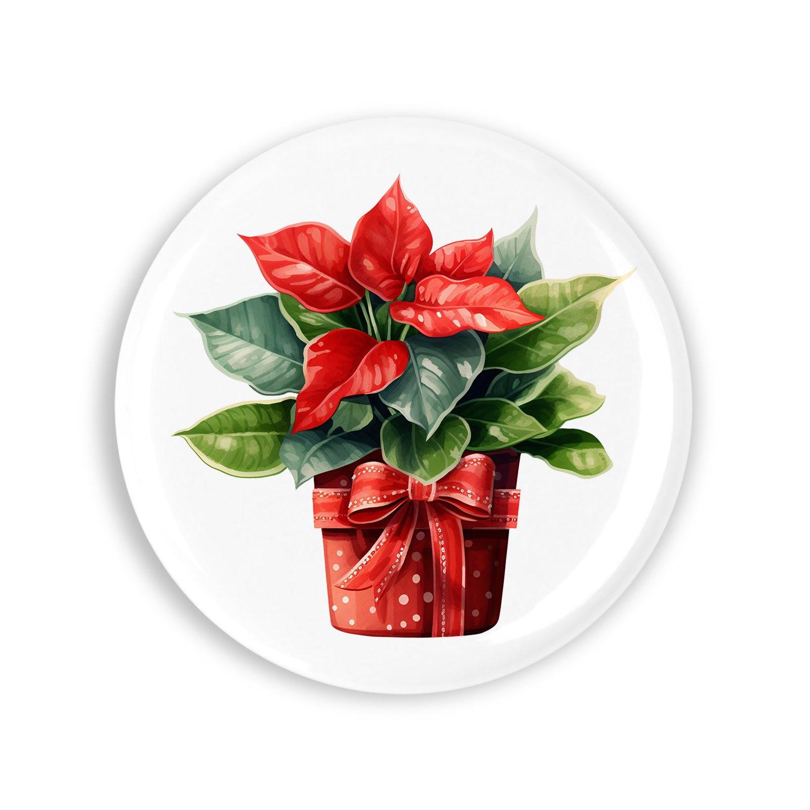 Set 4 insigne, Flori de craciun Alicia, NO1148, Metal, 44 mm, Multicolor