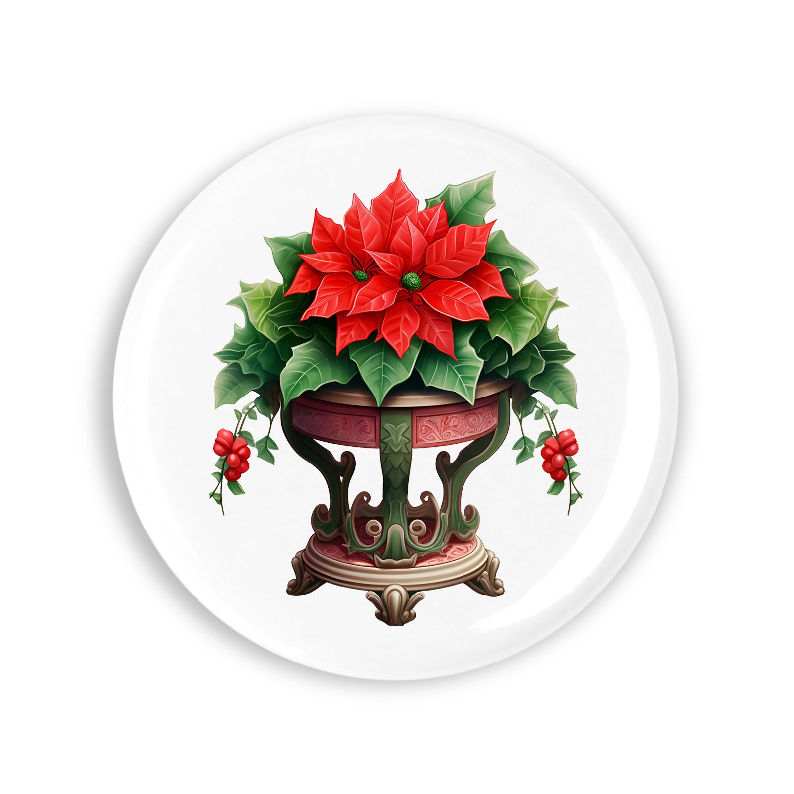 Set 4 insigne, Flori de craciun Ava, NO381, Metal, 44 mm, Multicolor