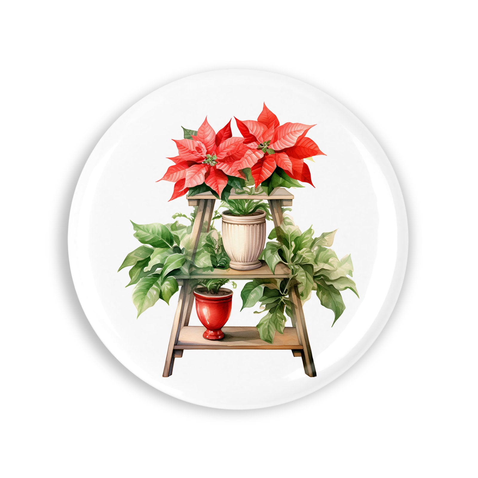 Set 4 insigne, Flori de craciun Sophia, NO1735, Metal, 44 mm, Multicolor